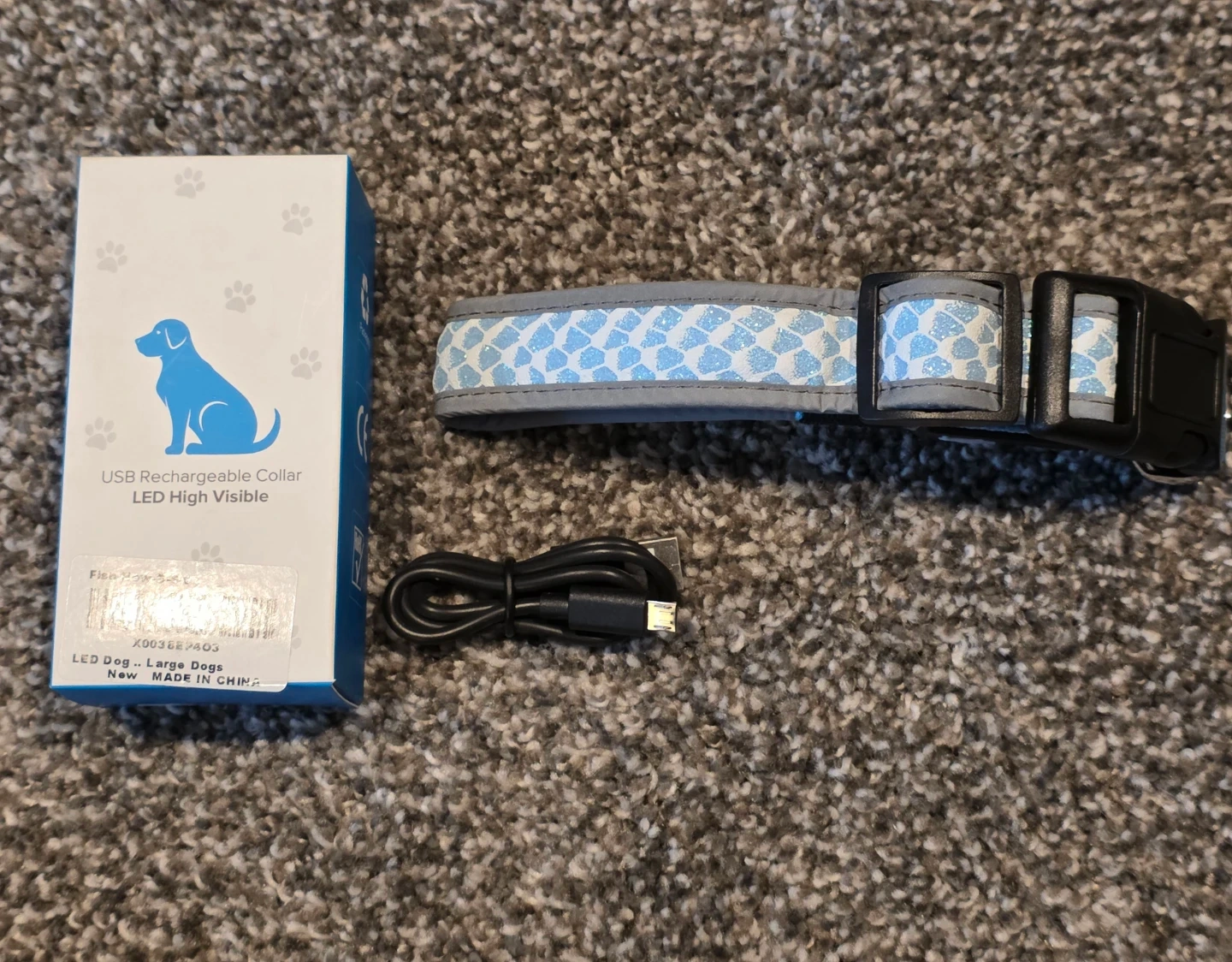 20I'm selling a new BiPaxti LED dog collar for large dogs. It's a USB rechargeable collar that is highly visible, and it has 3 working modes: constant, slow flash, and fast flash. The box is included, along with a USB charging cable Pick up in Naperville near naper blvd and 87th street or near downtown Naperville off of Chicago and Charles