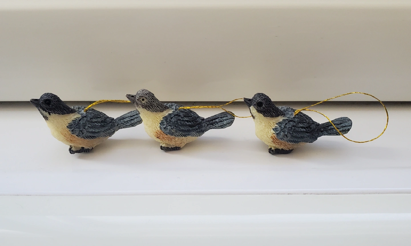 Here's a set of three small cute bird Christmas ornaments! They are in great condition