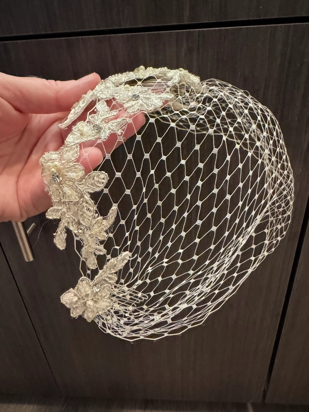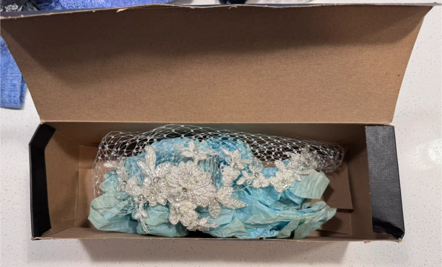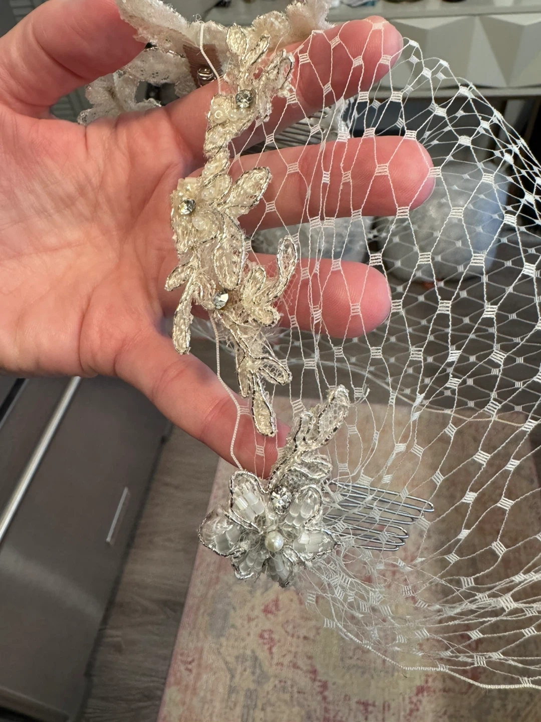 The veil has never been worn (no bad vibes) and has delicate floral detailing with pearls and rhinestones. It comes in its original box and is in perfect condition! Retailed for $165