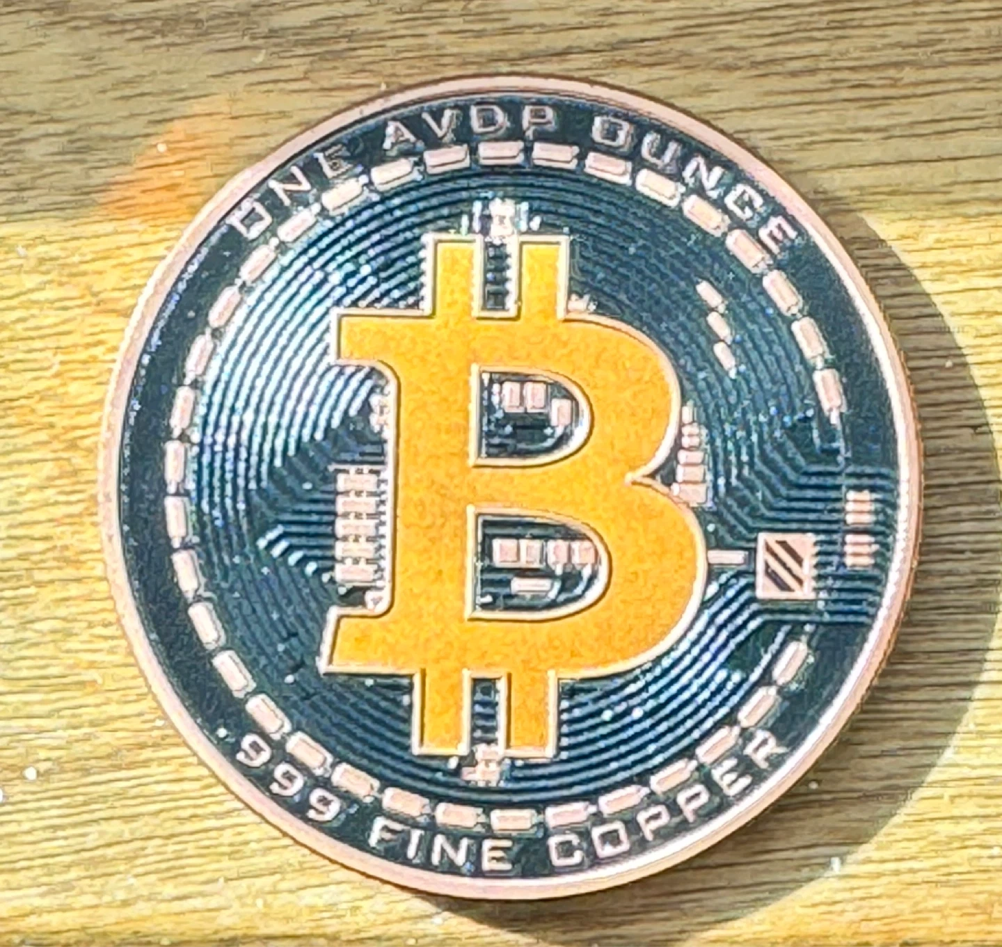 76Selling a Bitcoin commemorative coin made of 0.999 fine copper. It's a unique item for cryptocurrency enthusiasts or collectors! The coin features a detailed circuit board design on one side and the Bitcoin 'B' logo on the other