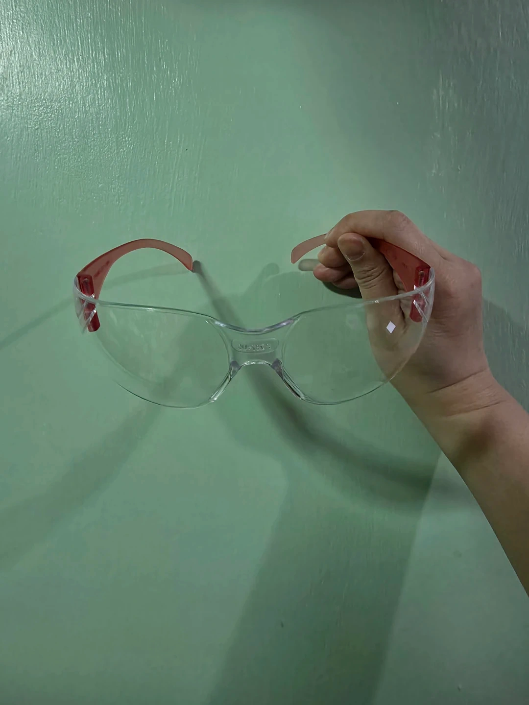 Received from Olaplex pop-up so their name is on it. Clear protective eyewear. These glasses feature a wrap-around design for a secure fit. They're made of durable, clear plastic with pink accents on the arms. One size fits most. I have 3 of them if you're interested.
