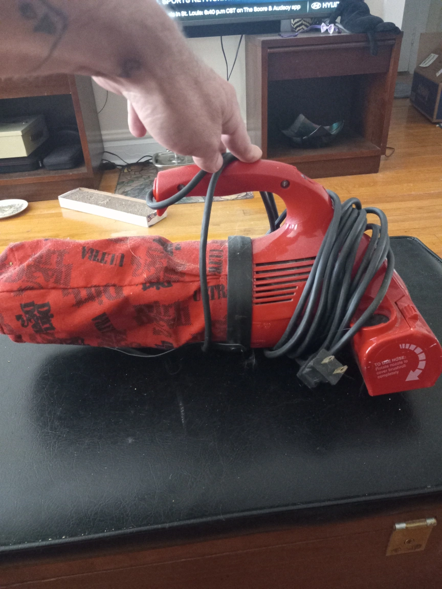 Selling a red Dirt Devil Ultra handheld vacuum cleaner. It's compact and easy to use for quick cleanups!