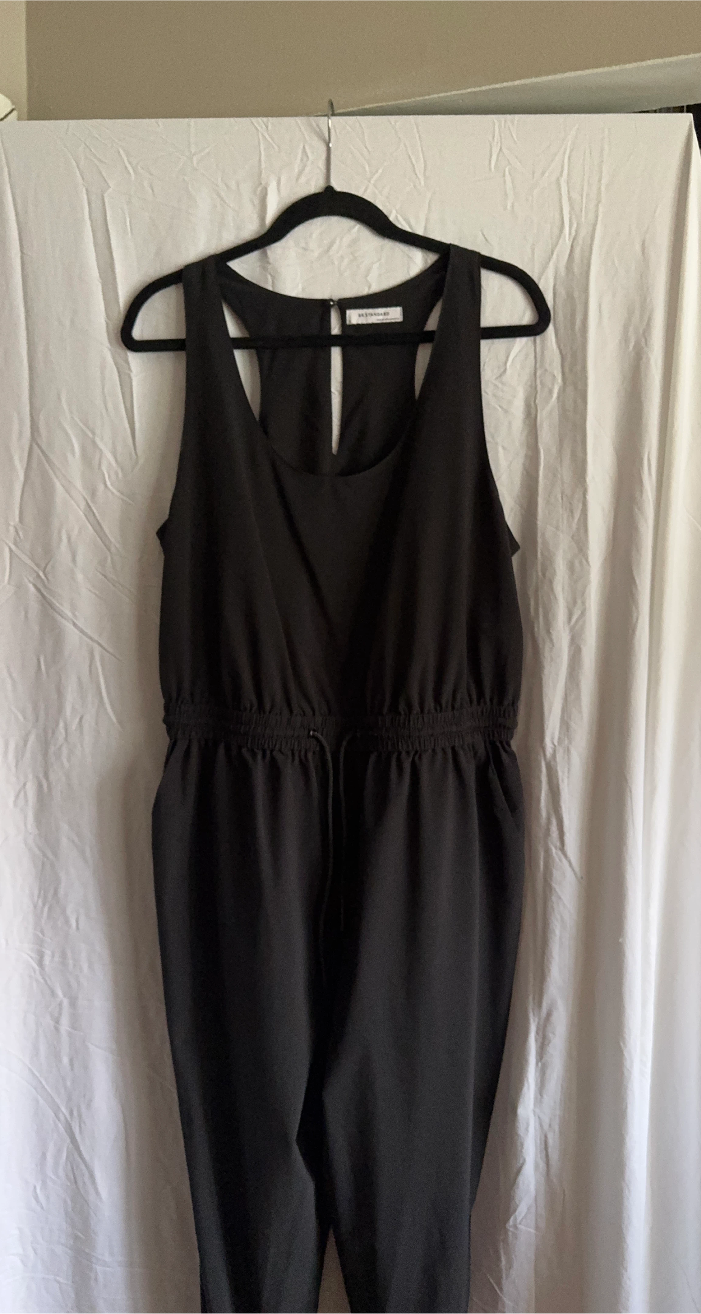 Selling a black jumpsuit from Bk Standard. It's in great condition and ready for a new home! It features a comfortable, relaxed fit with a drawstring waist.