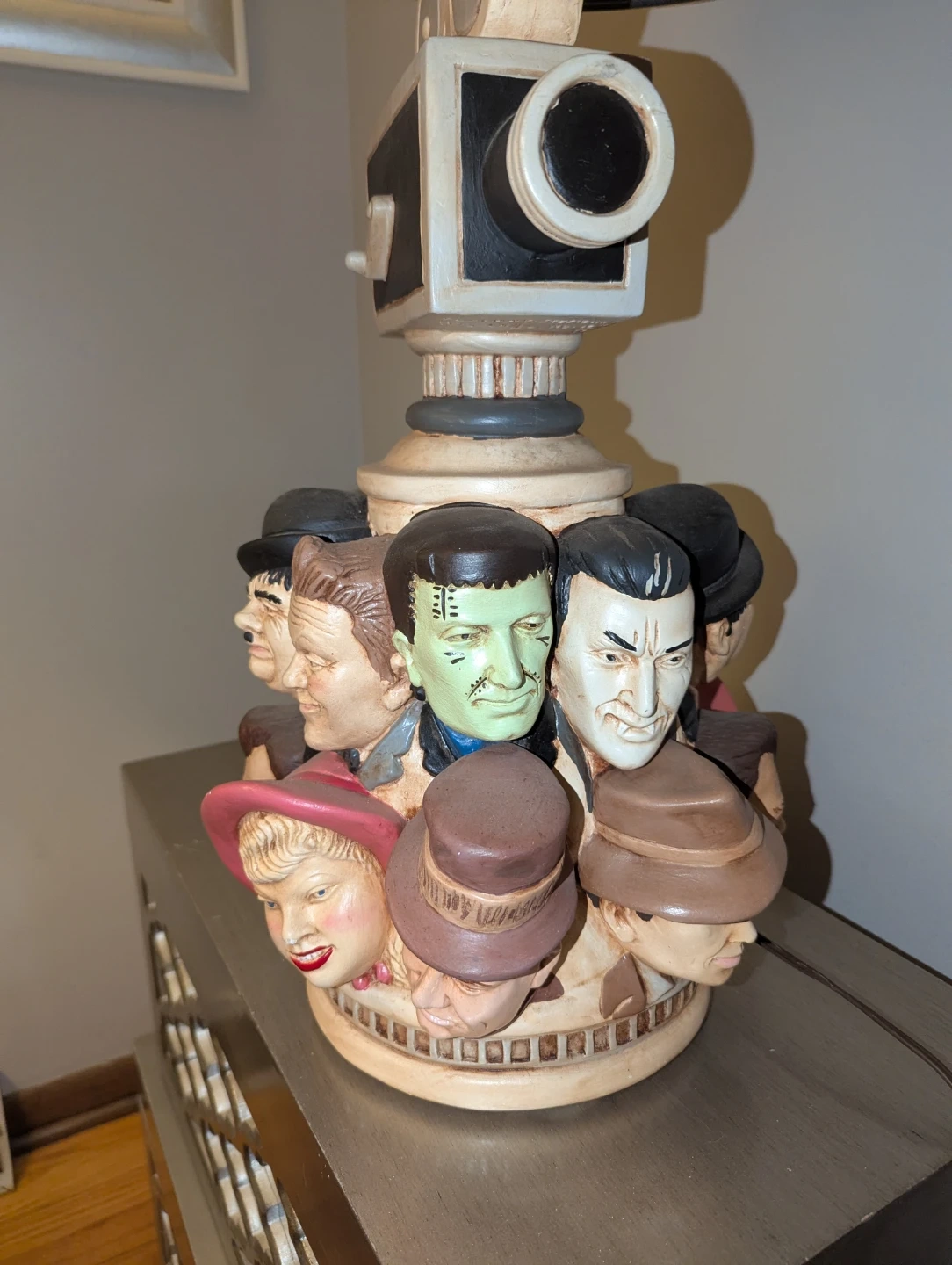 Rare vintage collector horror actor statue lamp w/shade
