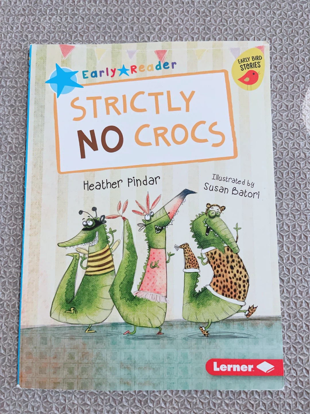 This is the 'Strictly No Crocs' book from the Early Reader series. It's illustrated by Susan Batori. This book is part of the Early Bird Stories collection. It's great for young readers learning to read!