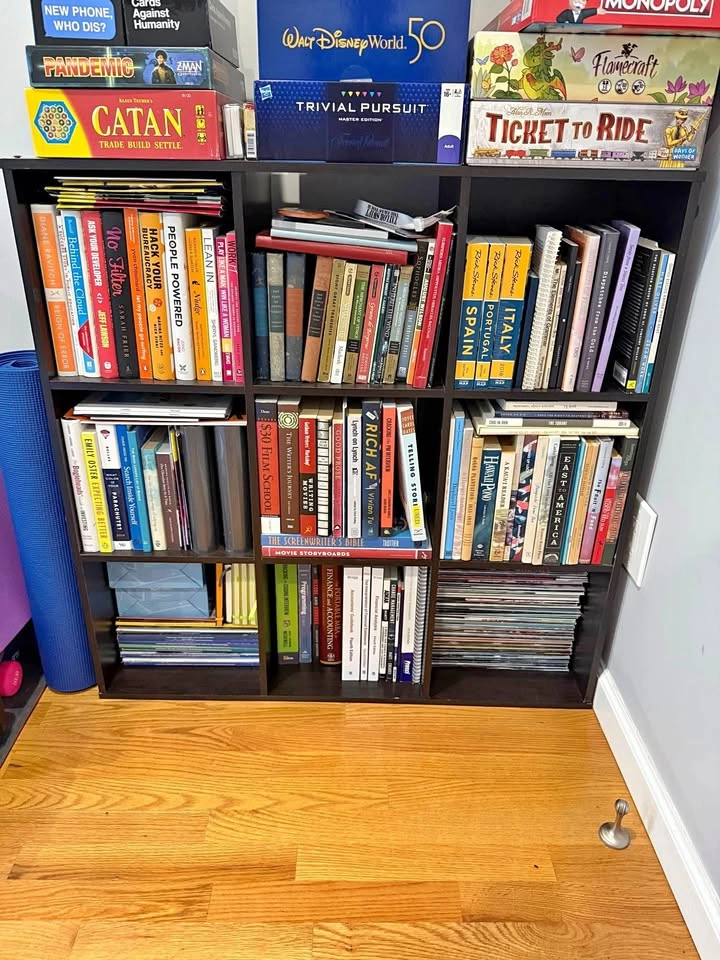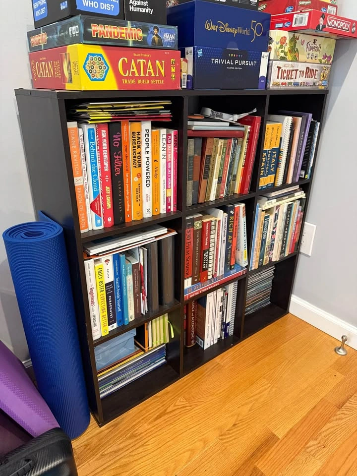 Good condition. Dimensions: 36" W x 36" H x 11.75" D Color: Black Originally Target 9-Cube Organizer Shelf 11" - Room Essentials (no longer sold) Similar item listed for $100 https://www.target.com/p/9-cube-organizer-brightroom/-/A-83961103?preselect=83499831#lnk=sametab You'll need 2 people to take it down one flight of stairs