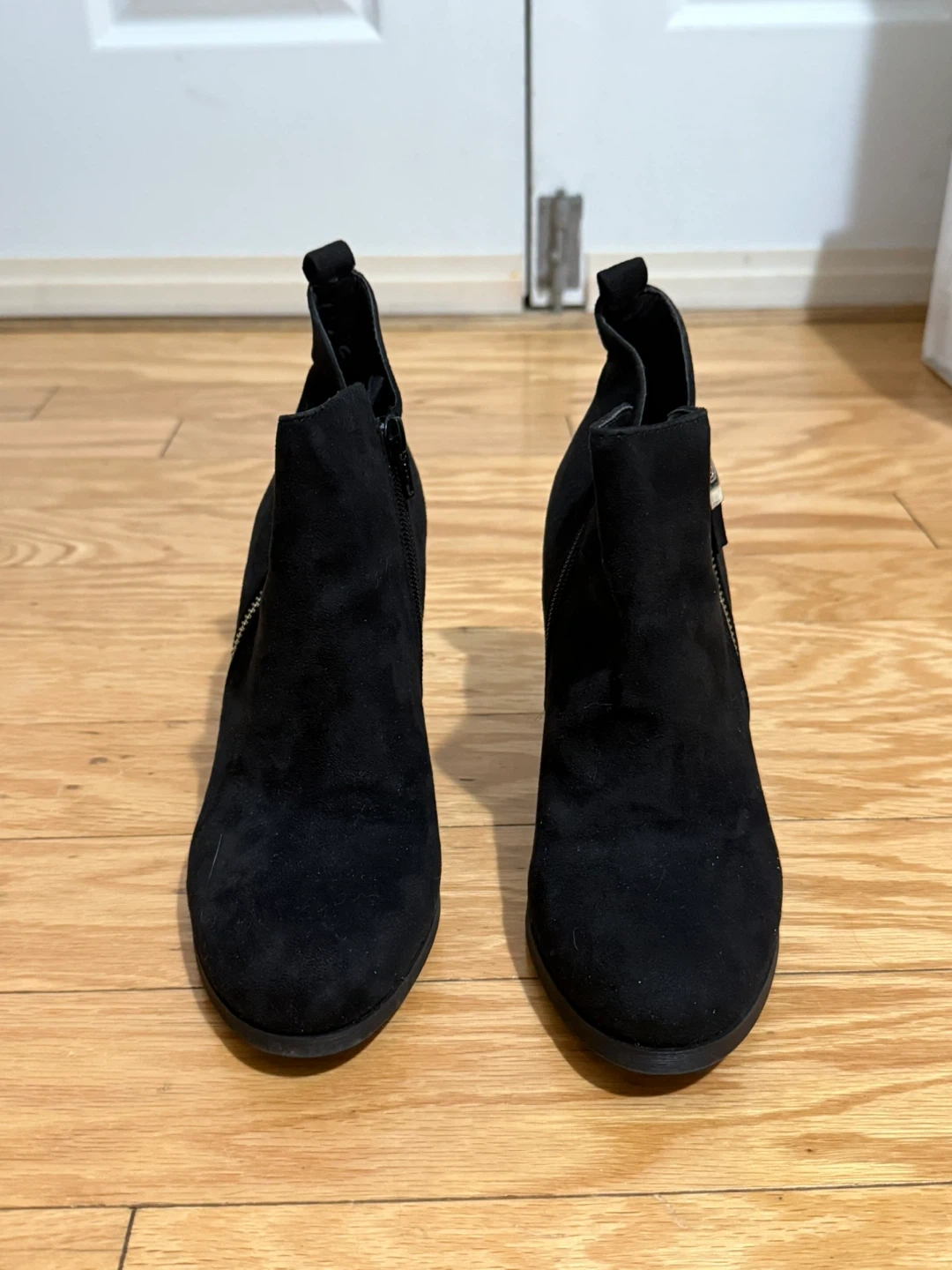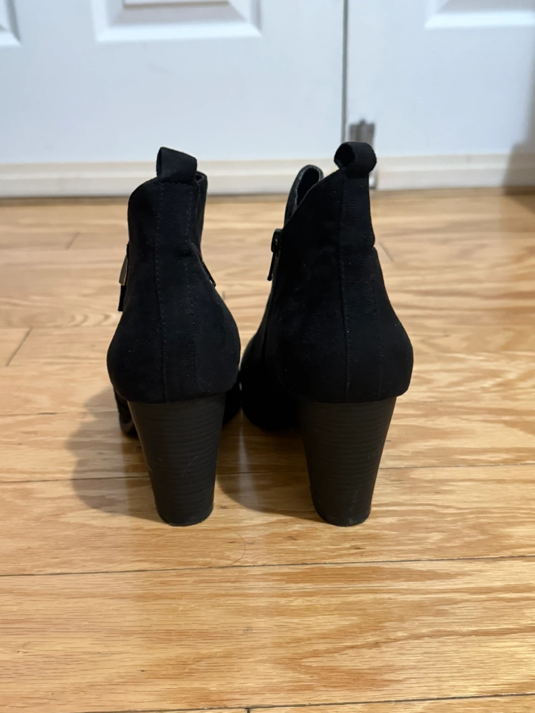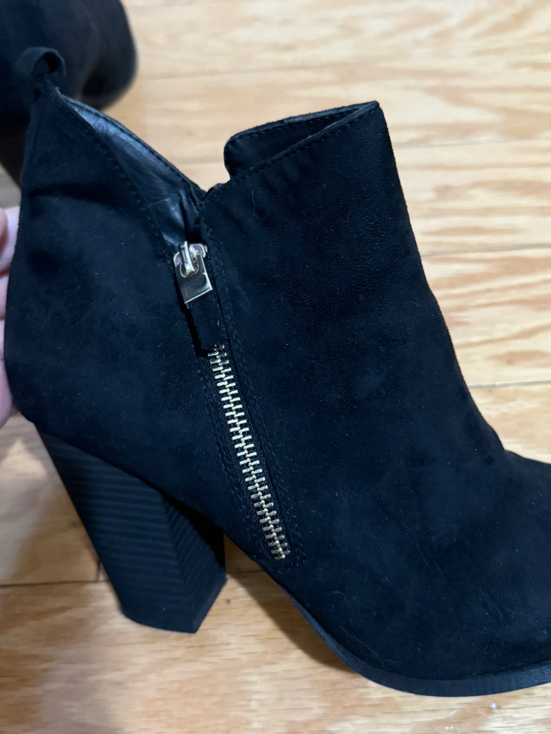 16Selling a pair of black ankle boots. They feature a stylish zipper and a comfortable heel. Perfect for adding a touch of chic to any outfit! Women 6.5 Pick up only