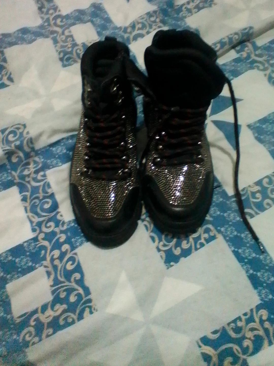 10Selling a pair of black ankle boots. They have a unique design and are in good condition. Perfect for adding a bit of sparkle to your outfit!