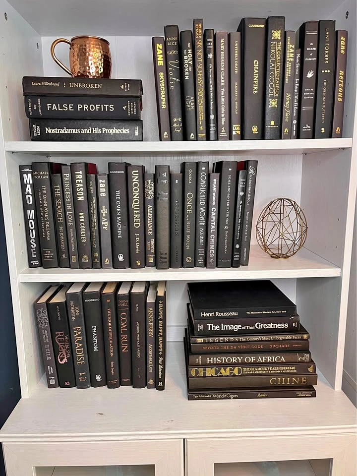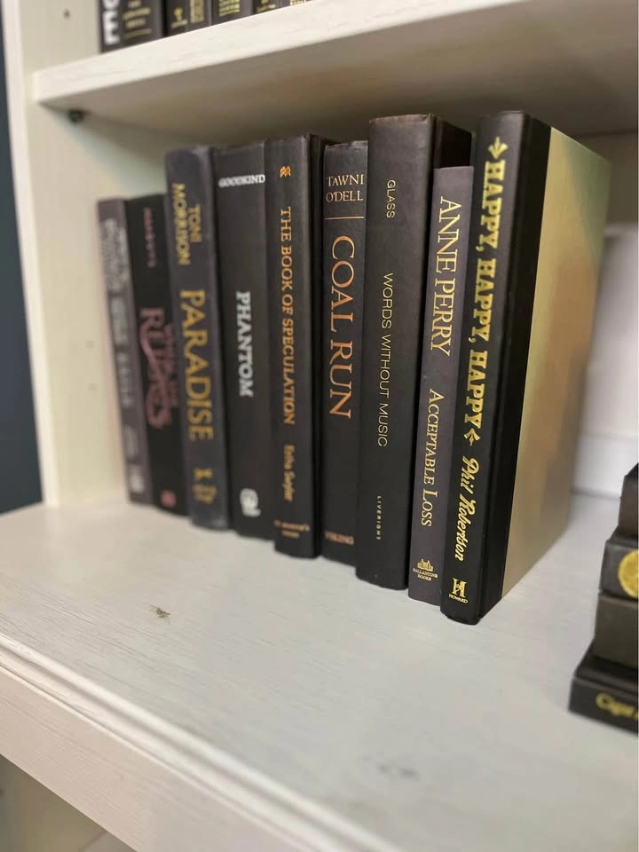 65Black spine books sold in bulk for shelf decor. $30 per linear foot (books standing upright). Photo is an example and not necessarily the same titles currently available. All titles are English with varying color font. White available for $40/foot. 10% discount for bulk orders of 5 feet or more. Coffee table size (10” tall +) available for $5/book. *See bottom right stack for example. Pick up in southeast Aurora 60503. Delivery available within 10 miles for additional fee.