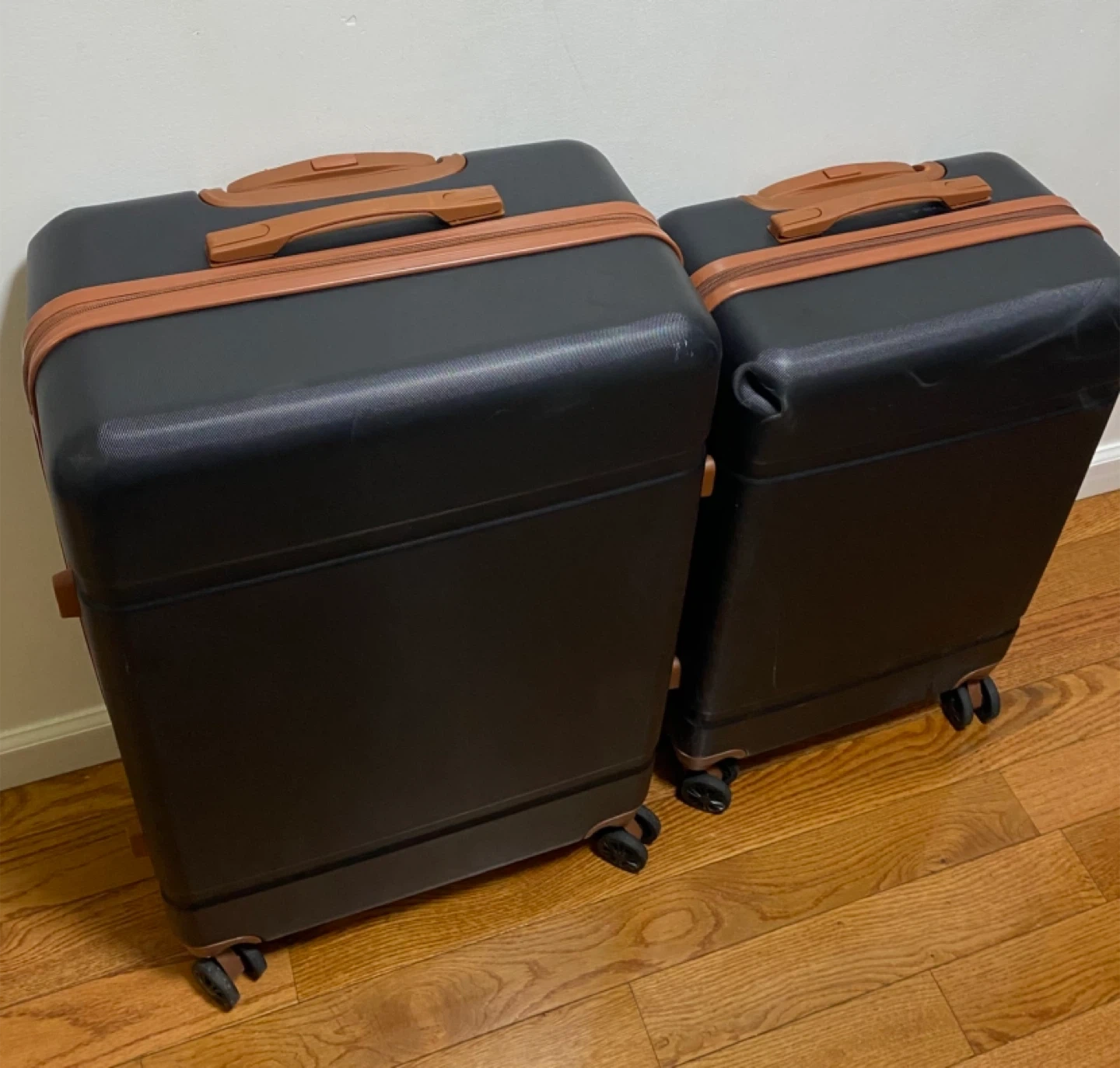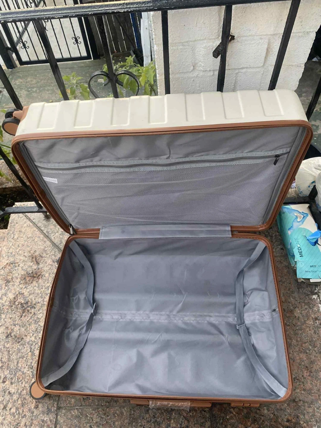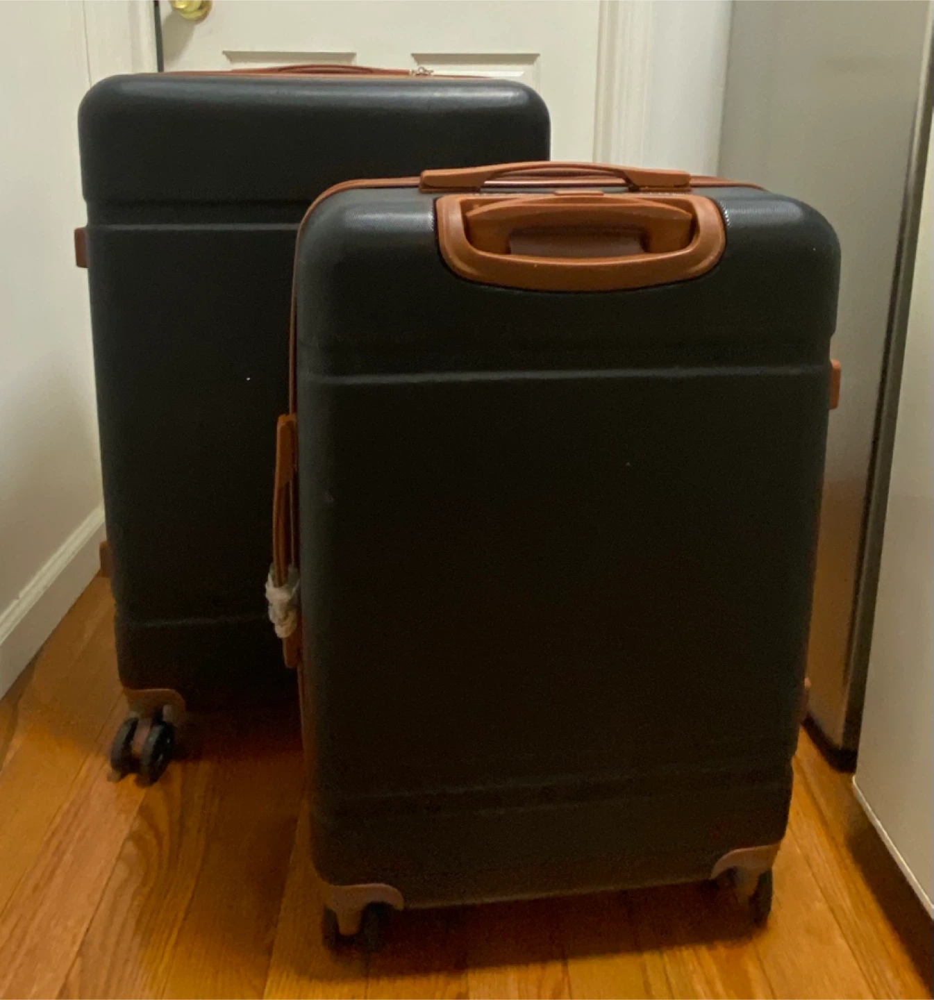 61Selling a luggage set in black with brown accents. Includes two suitcases, one larger and one smaller. Perfect for your next trip! Used one time small dent in the corner. One of them is 30 inches another one 26 inches. Pick up Ozone park.