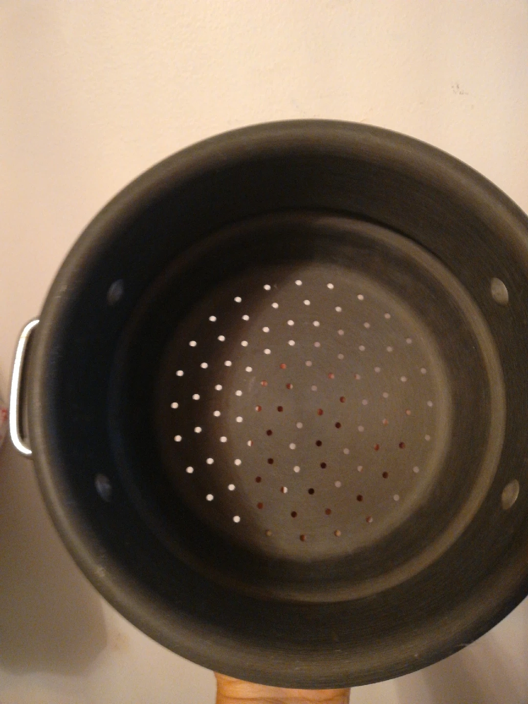 157Selling a black colander pot. It's in good condition and ready for a new home! Perfect for draining pasta or washing vegetables. It has two handles for easy carrying and a stable base