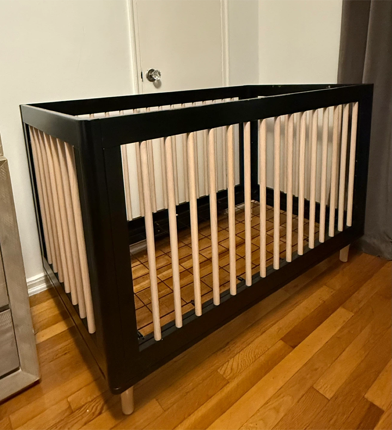 Selling a used black crib. It is in good condition and ready for a new home! Perfect for your little one's nursery