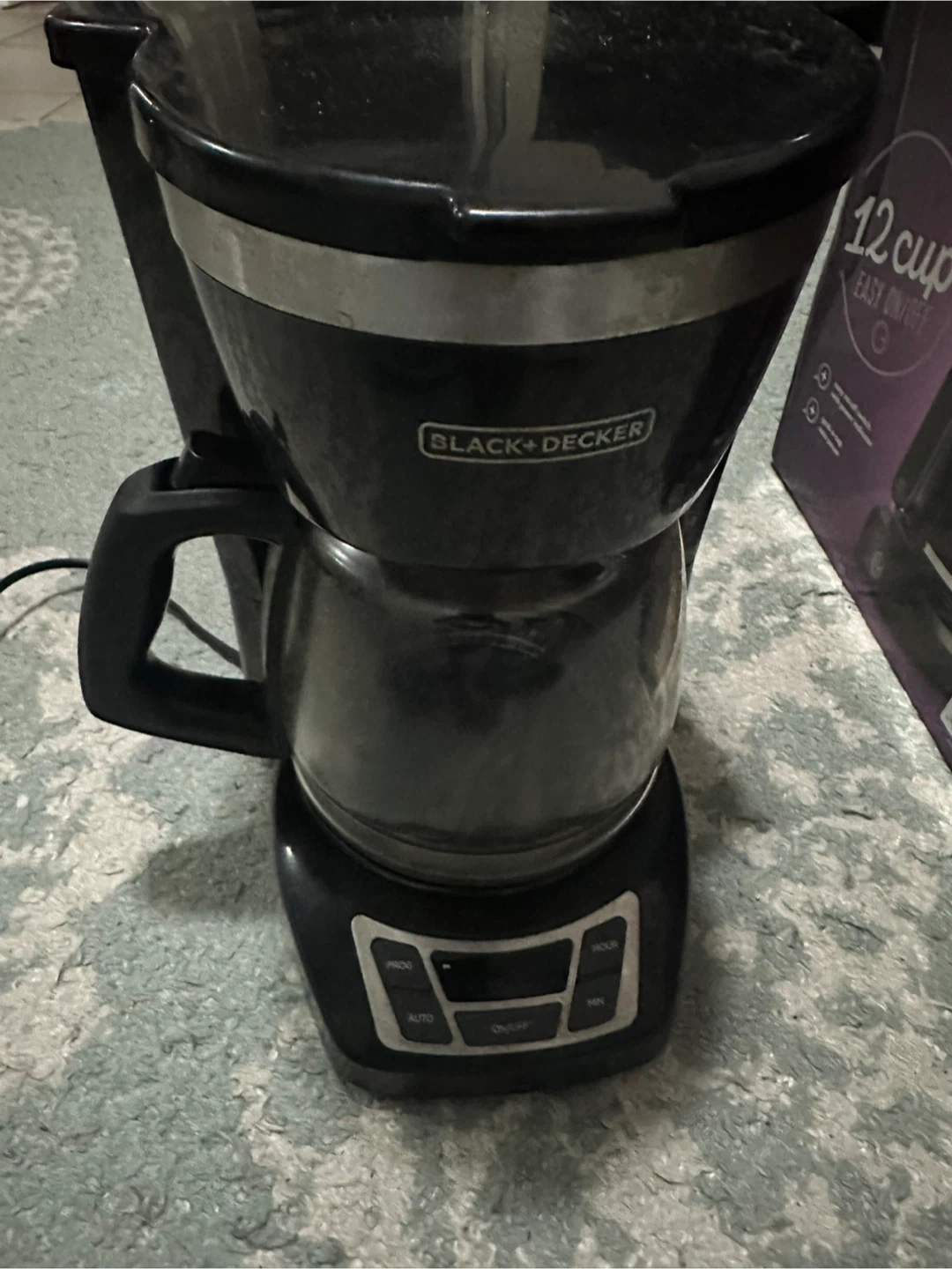 Selling a Black+Decker coffee maker. It makes up to 12 cups, perfect for a family or if you like to have extra coffee on hand! It's in great condition and ready to brew your favorite coffee