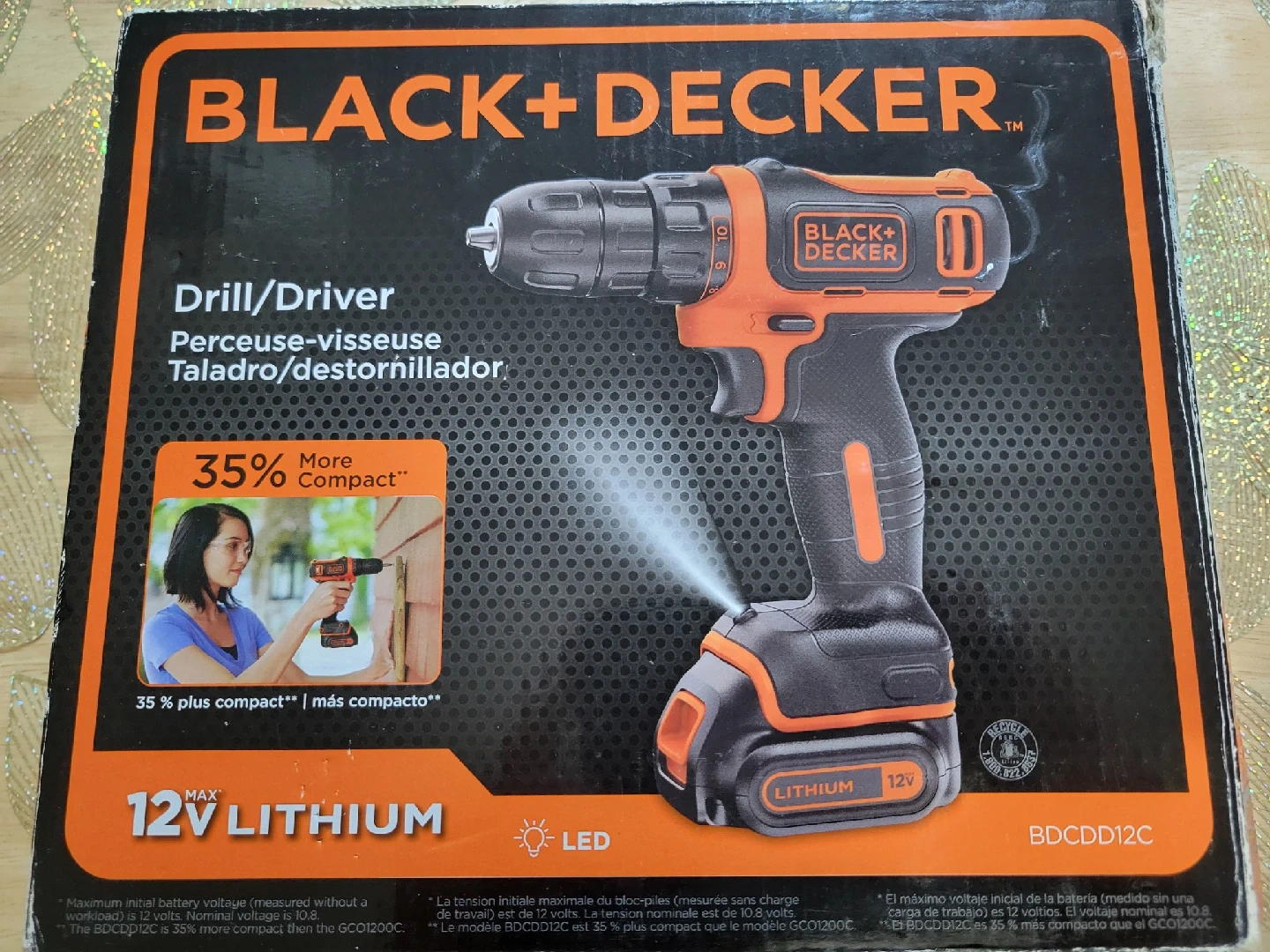 92Selling a Black+Decker 12V MAX* Cordless Drill/Driver (BDCDD12C). It's in new condition and comes with everything you see in the photos! - Drill/Driver - 12V Lithium Battery - Charger - Instruction Manual - Drill bits and driver bits It's 35% more compact than the GCO1200C, making it easy to handle