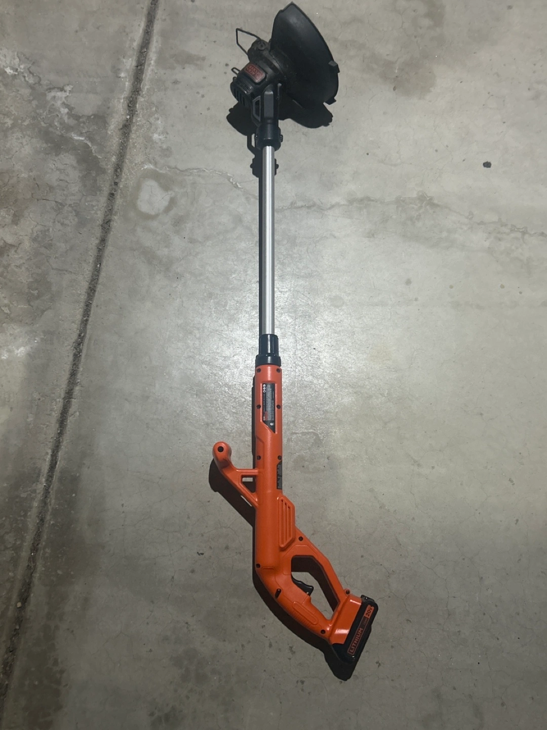 Selling a Black+Decker 20V Max cordless string trimmer/edger. It's in used condition but still works great for trimming grass and edging your lawn. It has a lightweight design, making it easy to maneuver around your yard.