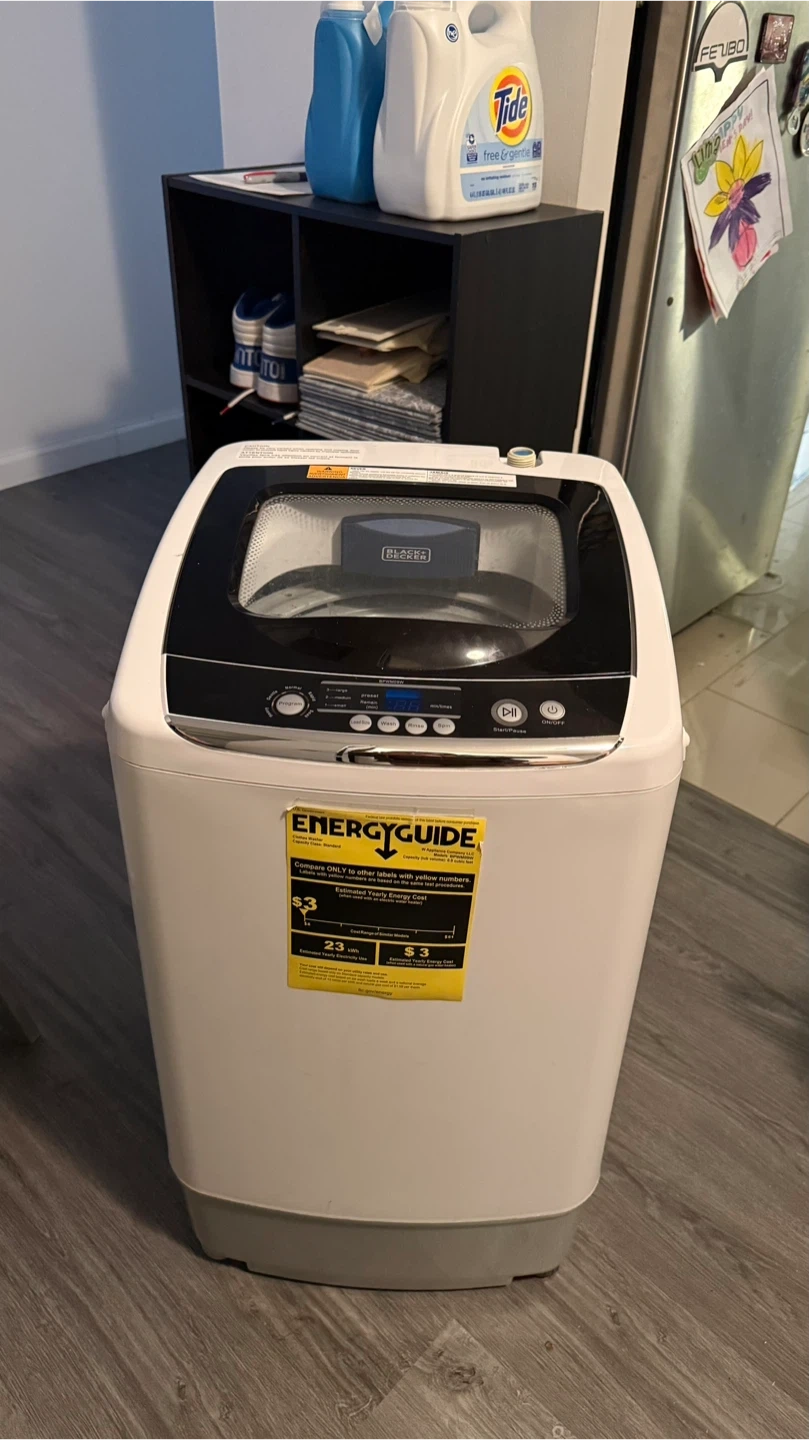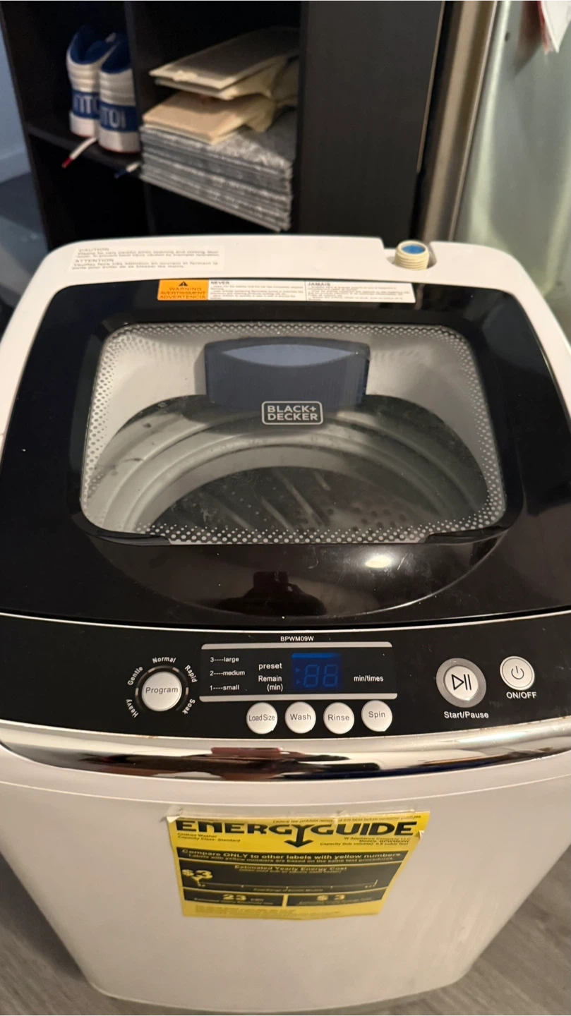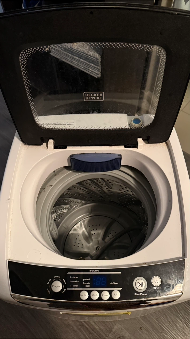 Selling my BLACK+DECKER 0.9 Cu. Ft. Portable Washer (Model BPWM09W). Used for about 2 years, works perfectly. Selling only because we’re moving to a unit with in-unit laundry. Includes everything needed to connect and use right away, quick connect sink adapter, drain hose, and an anti-vibration mat for the floor to reduce noise. Purchased on Amazon. Great for apartments and small spaces. https://www.amazon.com/dp/B0799Q45TT
