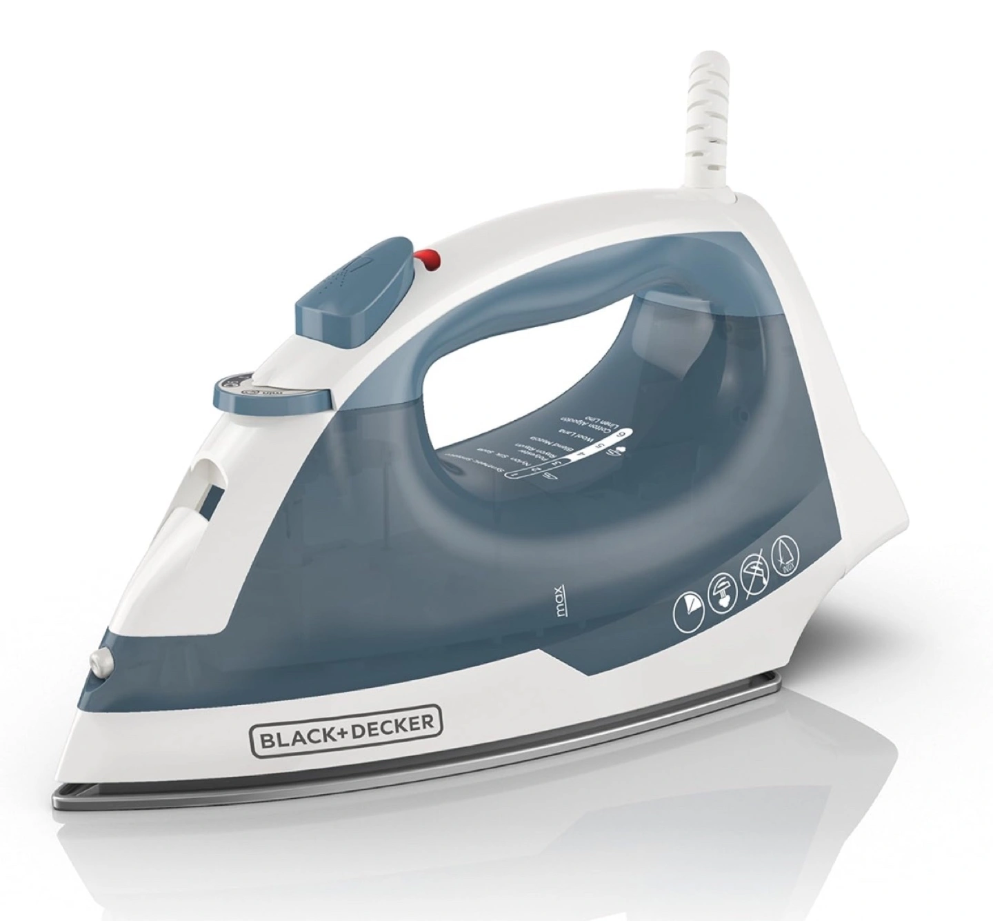 White and grey steam iron.