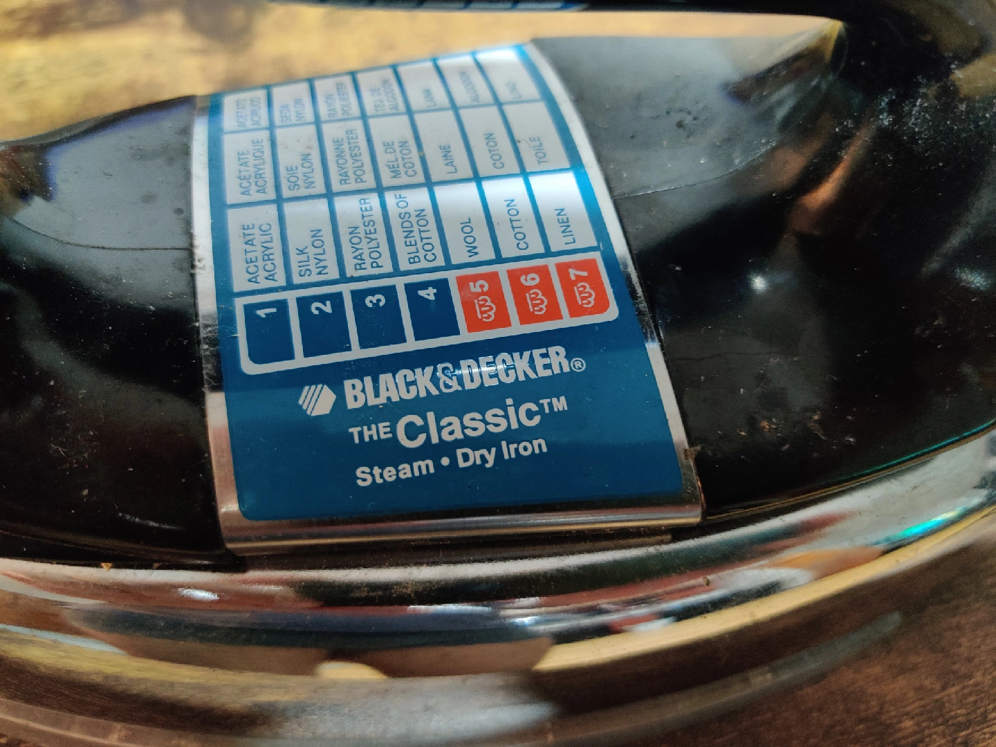 Selling a Black & Decker The Classic steam and dry iron! It's in good working condition and ready to help you get those wrinkles out. It features multiple fabric settings for different materials like acetate, silk, rayon, wool, cotton, and linen