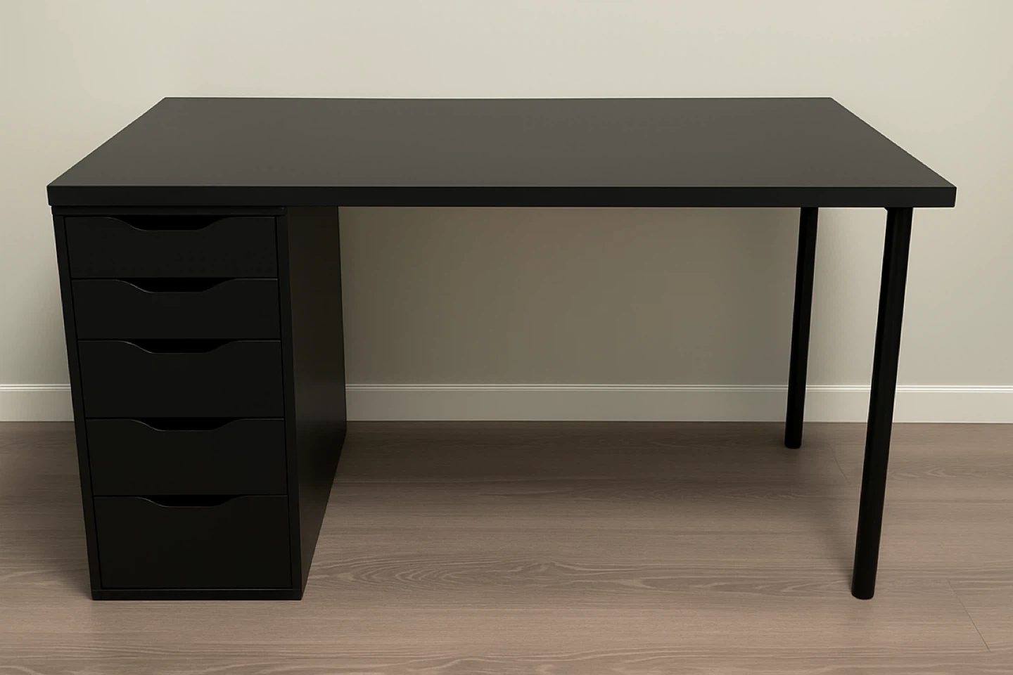 10Selling a sleek black desk featuring a set of drawers on one side. It's in great shape and ready to be used in your home or office space. Perfect for studying, working, or any other activities you need.