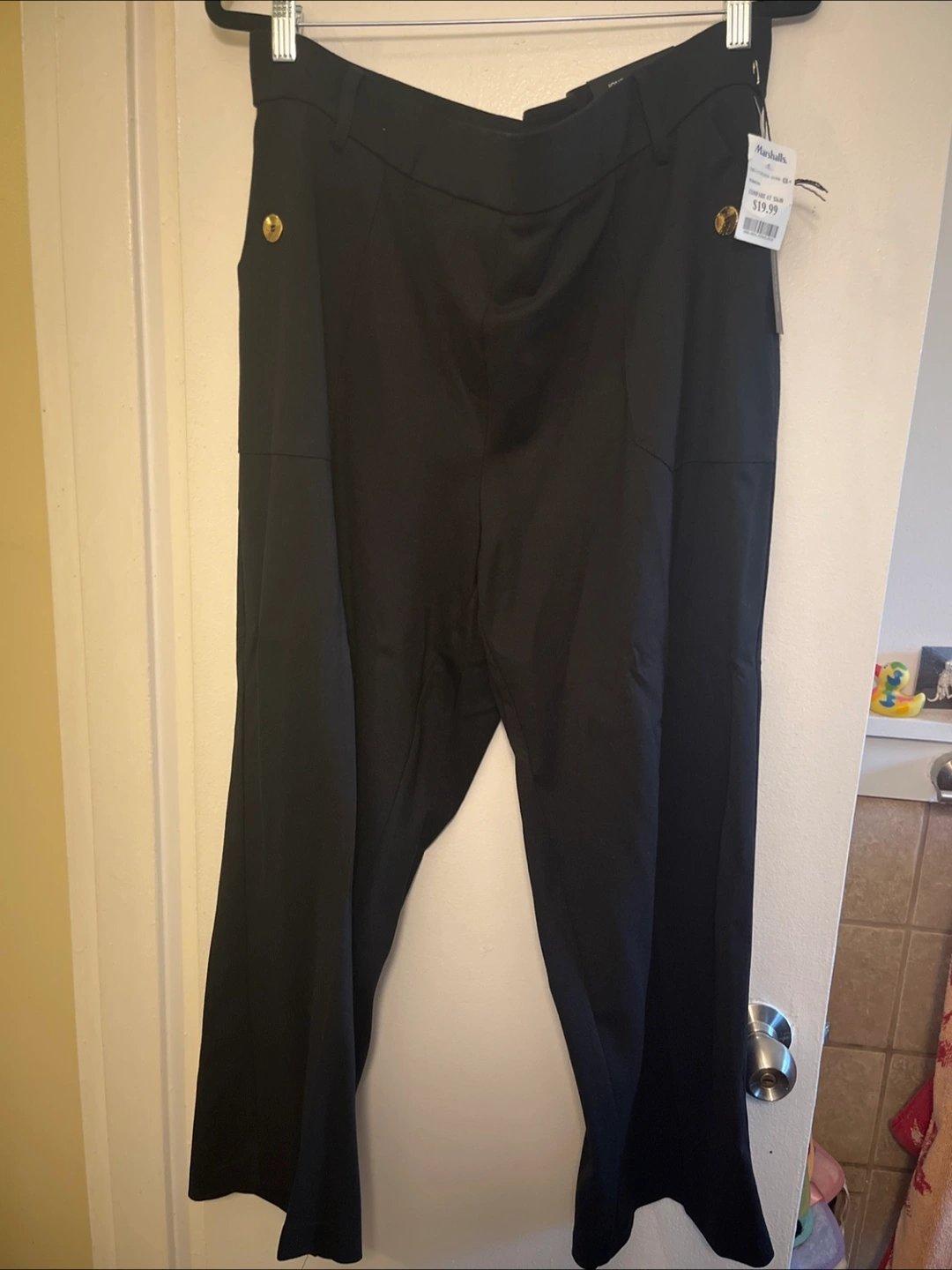 Selling a pair of black dress pants. They have gold buttons on the side. Brand new never worn tags still on them.
