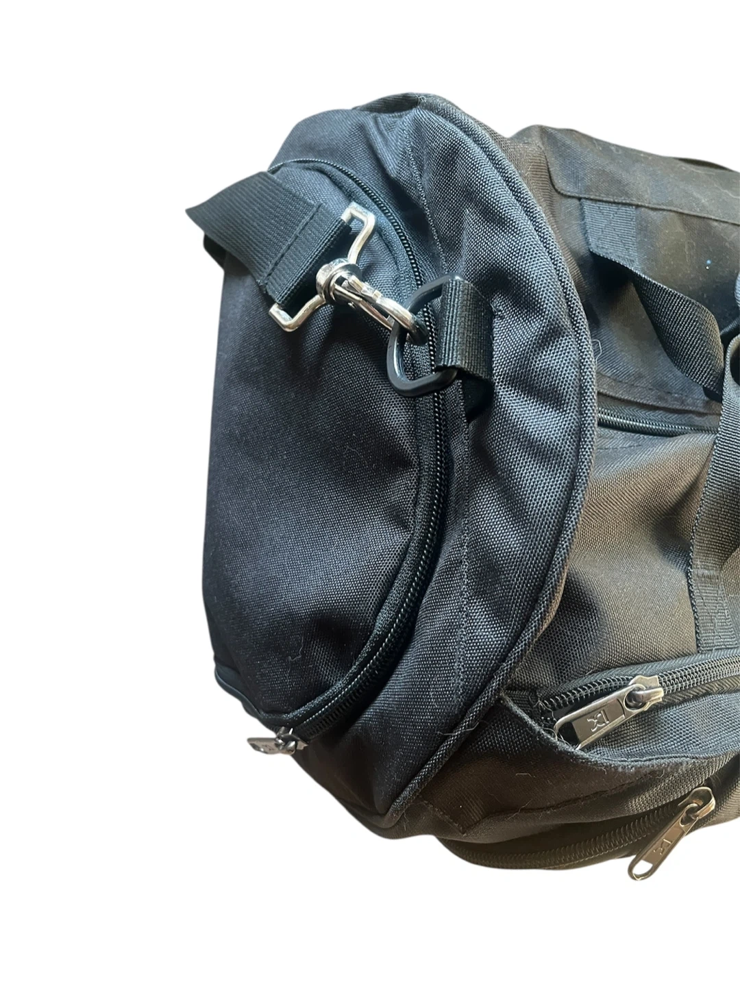 I'm selling a black duffel bag from IX Sport! It's in great condition and ready for your gym sessions or weekend trips. It features multiple zippered compartments to keep your belongings organized and secure