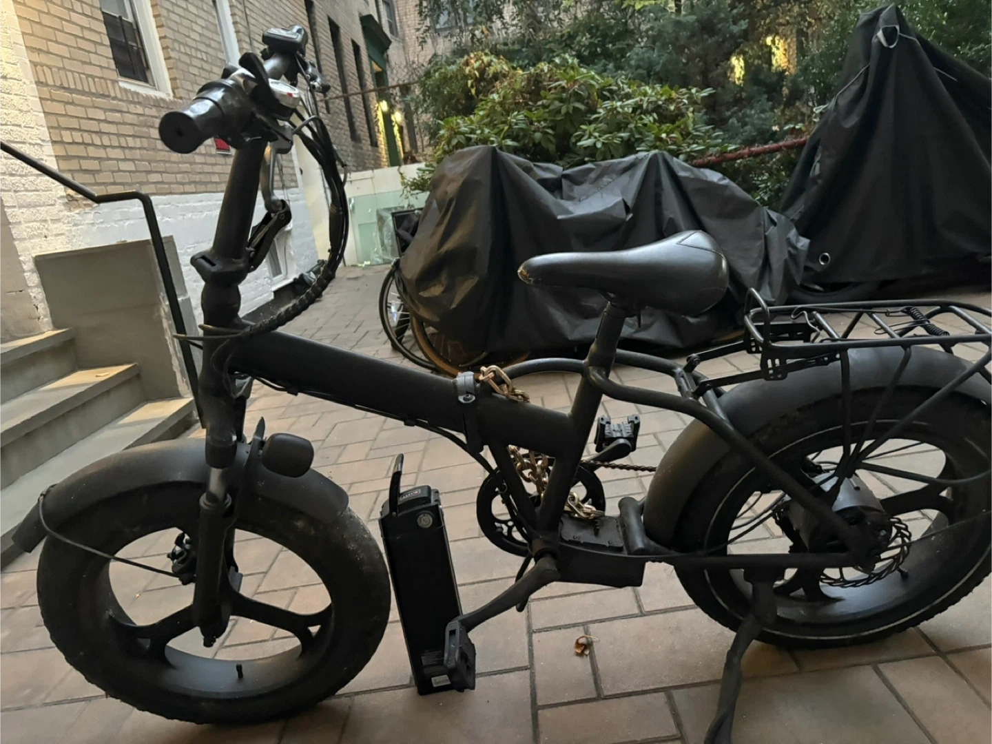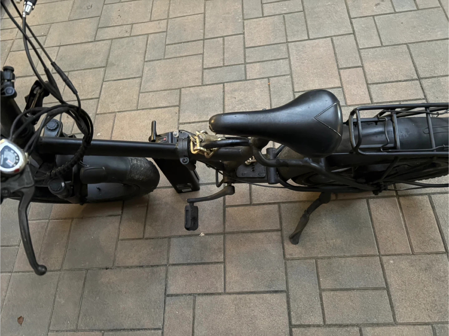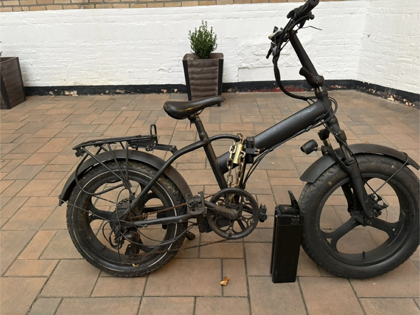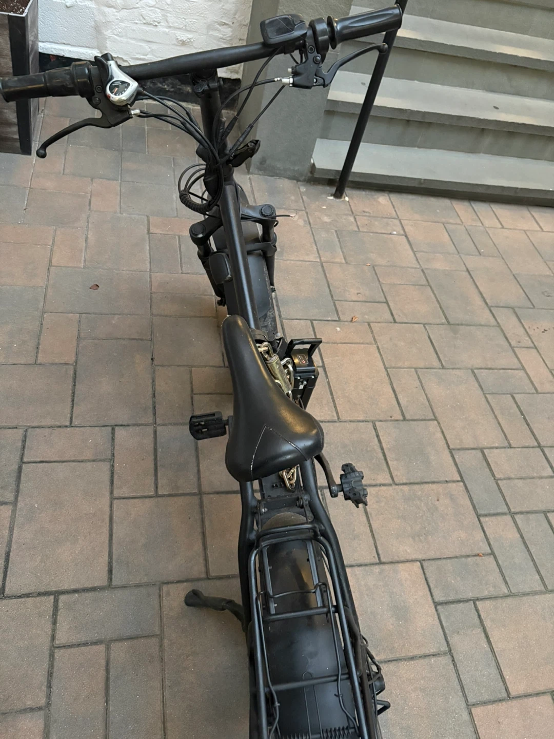 Selling a black electric bike. It shows some signs of use. front disc to repair.