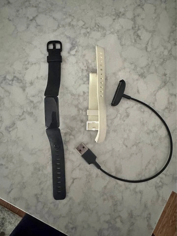 Black Fitbit Inspire 2 in great shape! Comes with everything shown: • Fitbit Inspire 2 with black band • Extra white band for switching up your style • Charging cable • All working perfectly Perfect for tracking steps, workouts, sleep, etc. Selling because I upgraded to a newer model. $35 firm. Cash only, can meet locally.