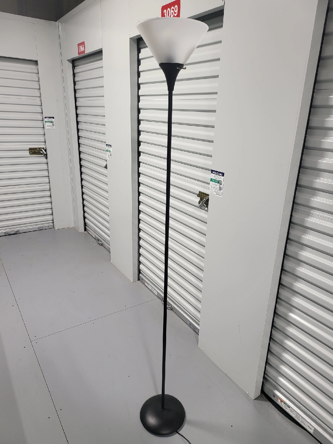 Selling a sleek black floor lamp with a white shade! It's in great condition and provides a nice ambient light. Perfect for any room!