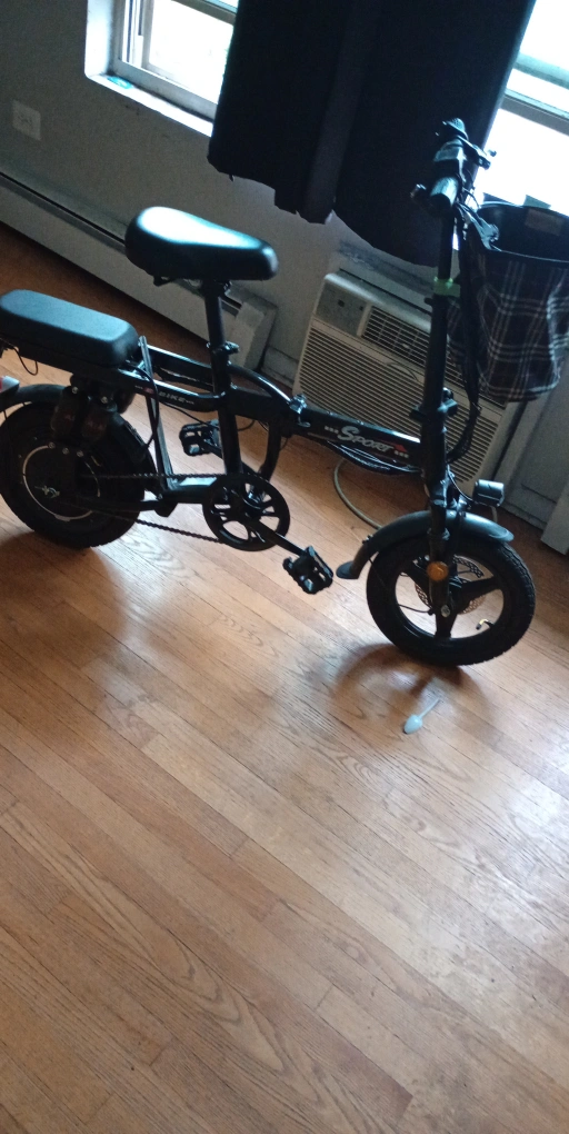10Selling a black folding electric bike! It has a basket in the front and a seat in the back.. it has no battery but I have the key and you also have to buy a charger for it