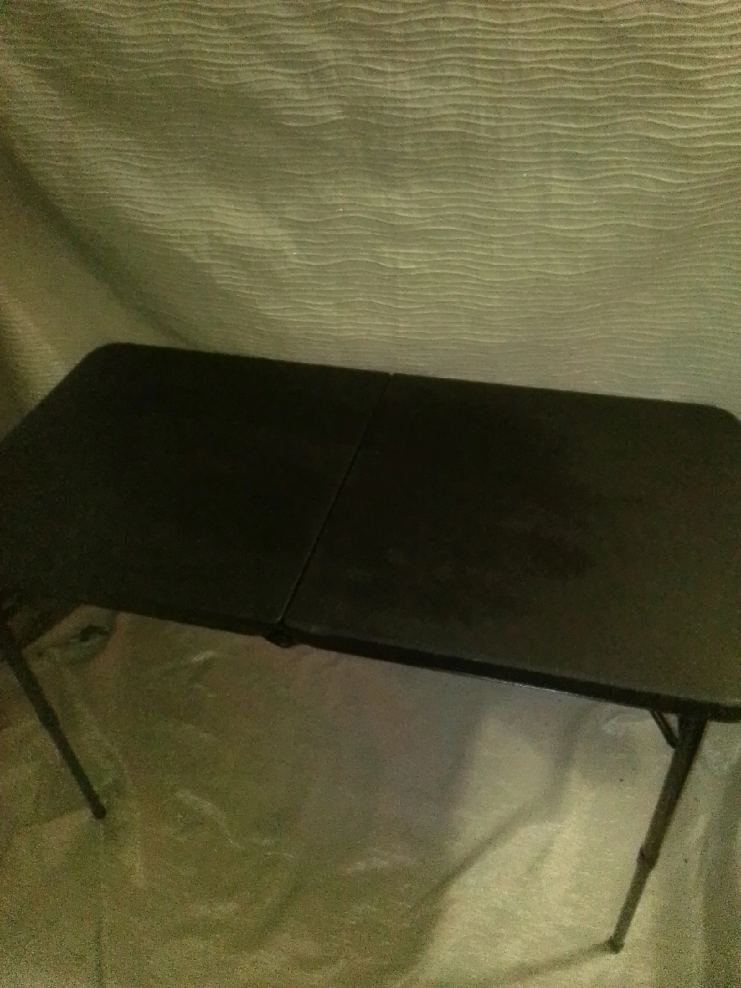 326Selling a black portable folding table. Perfect for events, parties, or extra table space when you need it! It's in good condition and ready to use adjustable height, 28x39x20 2ft.tall 18"tall Closed 20x21x 2 1/2