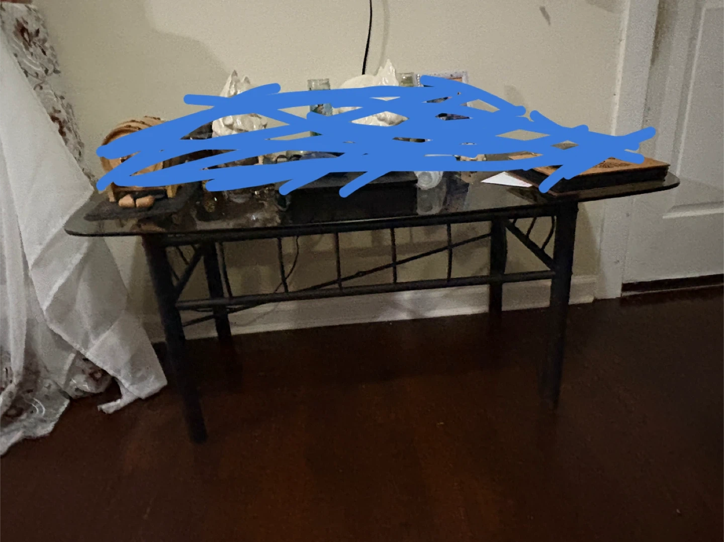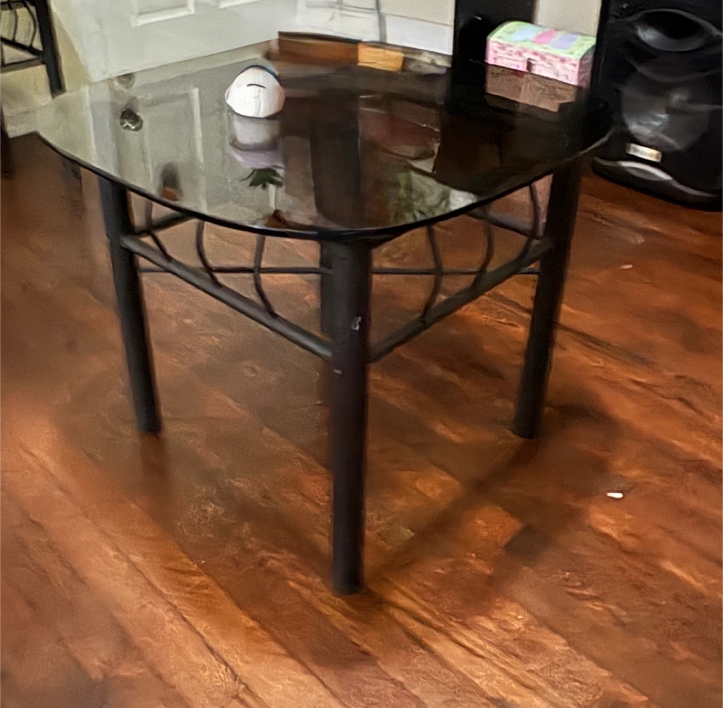 15Selling a black end table with a glass top. It's in good condition and would look great in any living room or bedroom Vendo una mesa auxiliar negra con tapa de cristal. Está en buenas condiciones y se vería muy bien en cualquier sala de estar o dormitorio