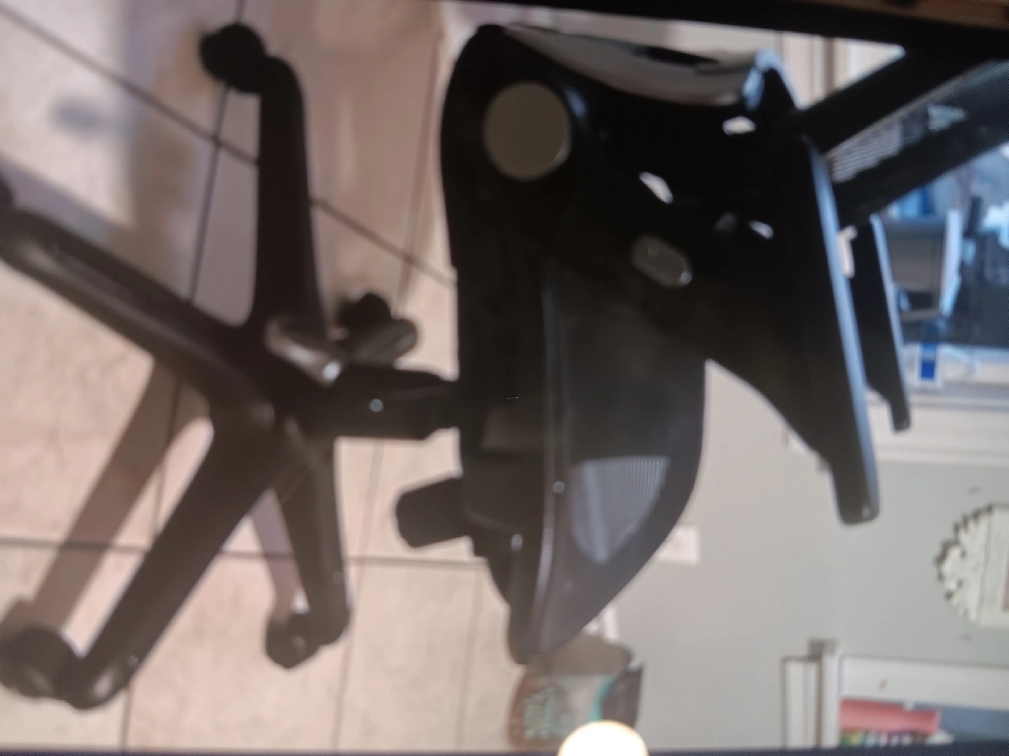 Selling a black Herman Miller Mirra office chair. It's in good condition and ready to provide comfortable support for your workspace. This chair is known for its ergonomic design and adjustable features.