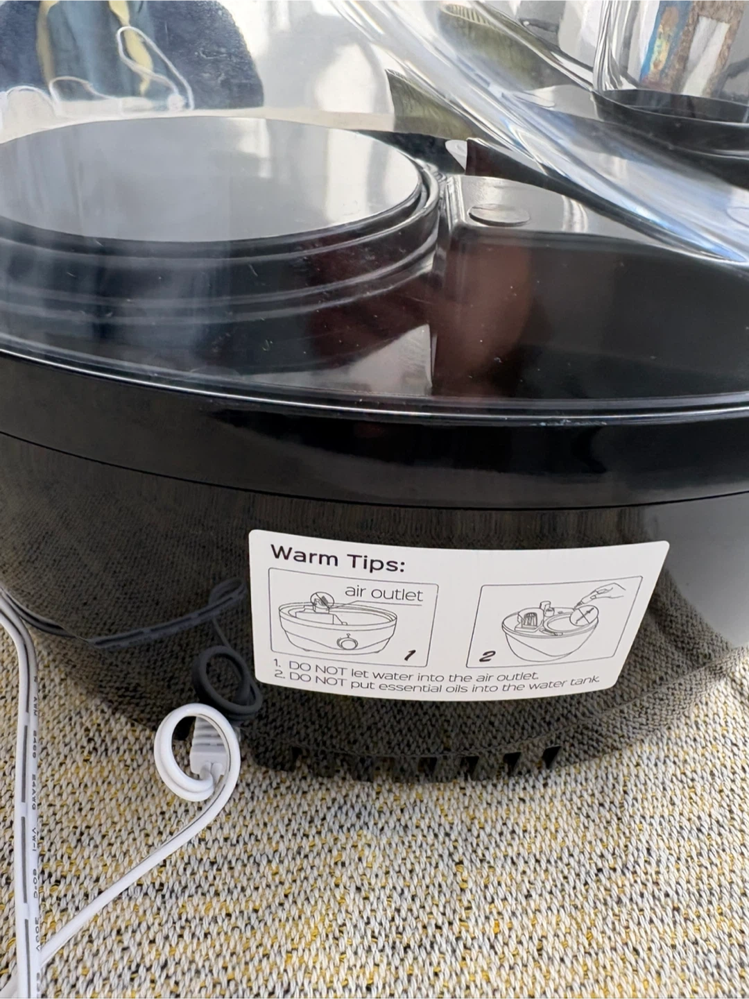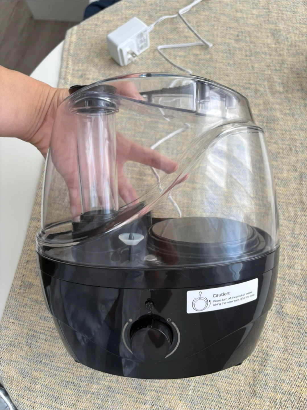 75Selling a small humidifier in perfect condition. It will be perfect for a small room/bedroom. Used it twice, just didn’t get into a habit of using it. It features a clear water tank and a control knob.