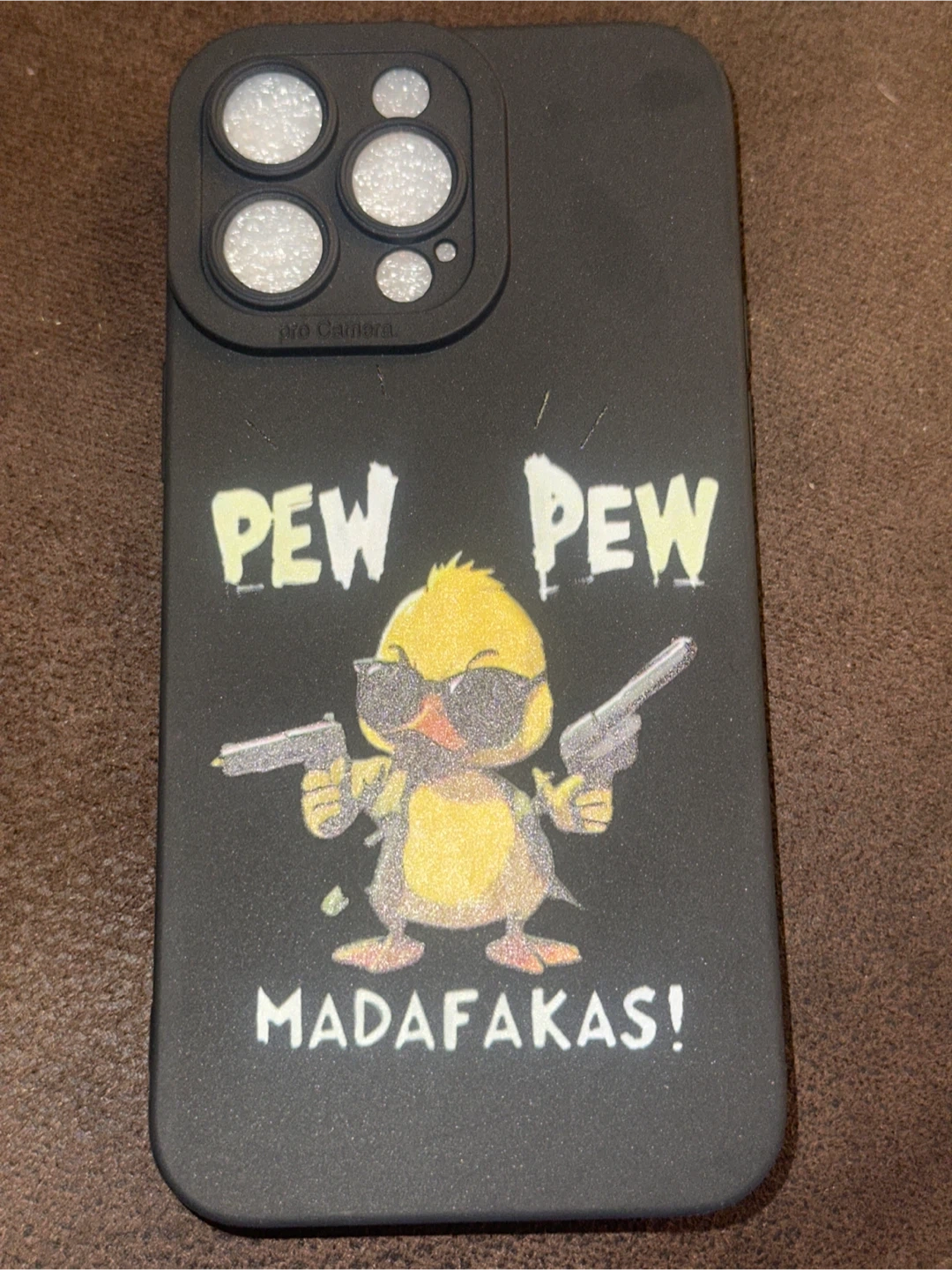 Check out this cool black iPhone case! It features a fun chick design. It's New and ready to protect your phone with a bit of humor