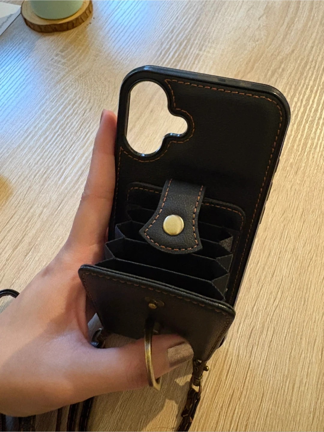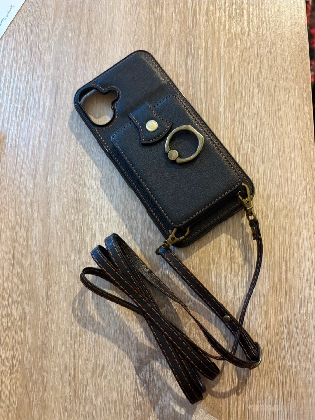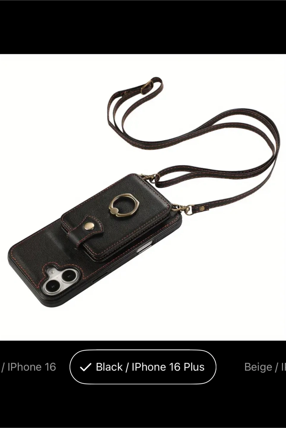 Black iPhone 16 Plus Wallet Case with Strap