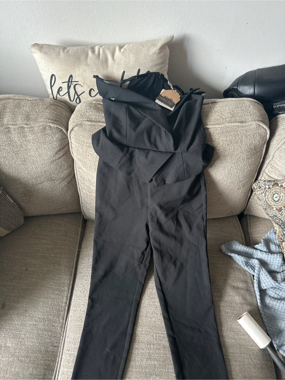 10Selling a stylish black jumpsuit in size small! It's in great condition and ready for a new home. The design is super flattering and perfect for a night out or a special occasion Never worn tags still on