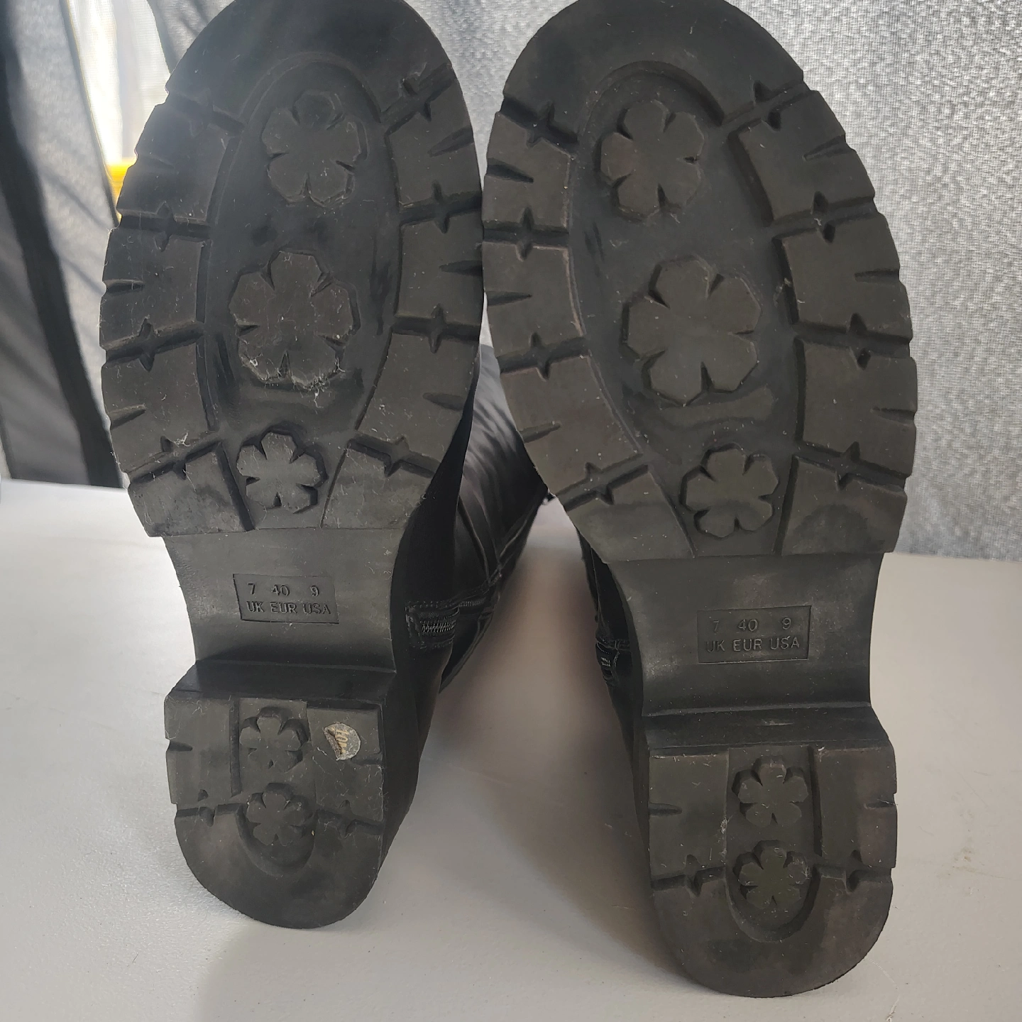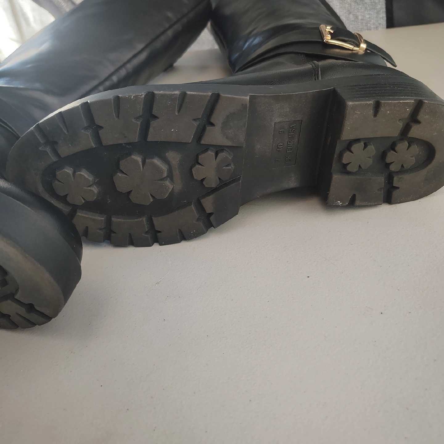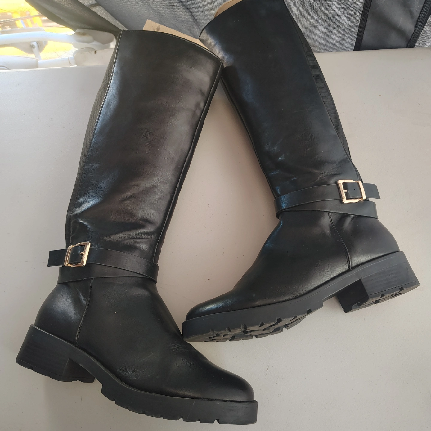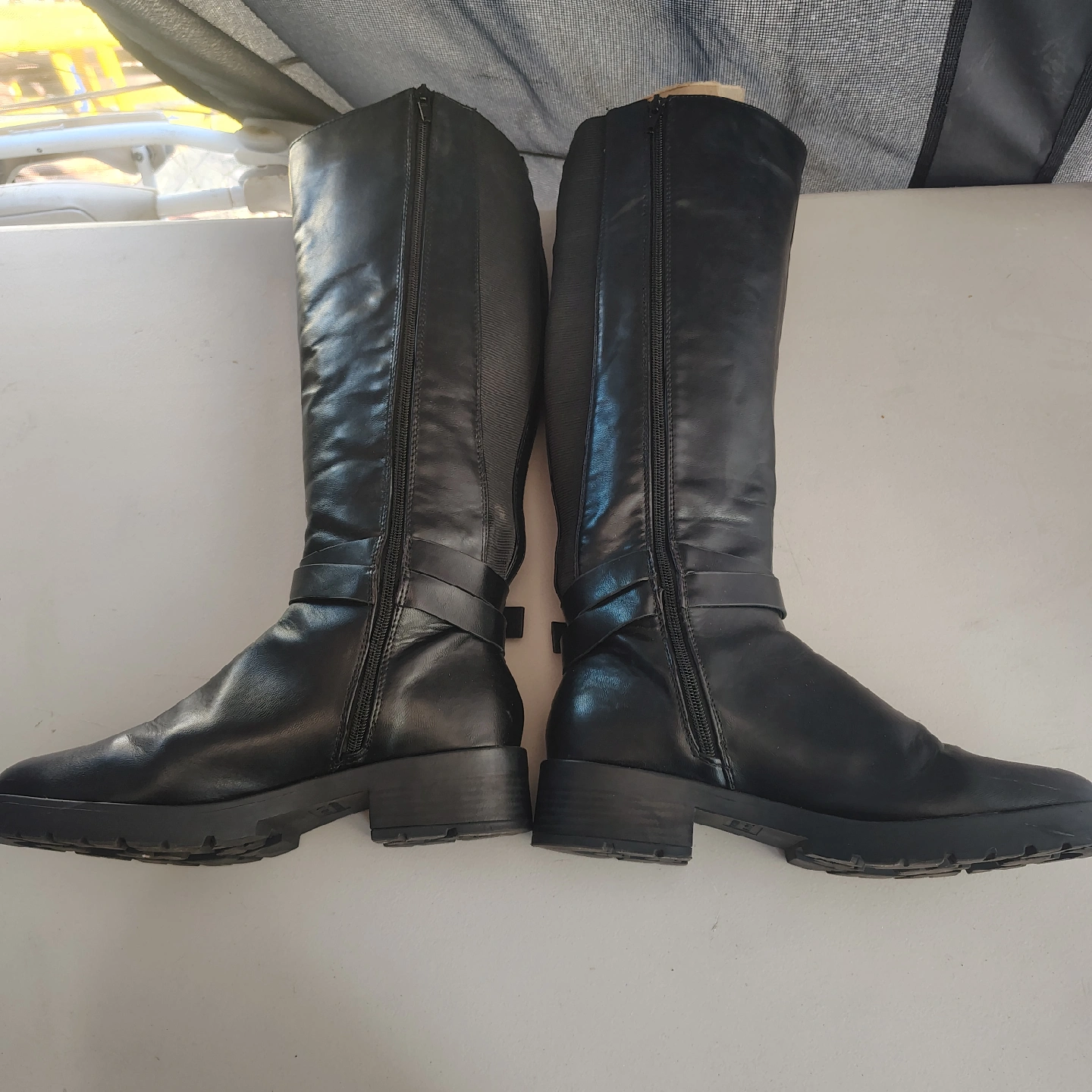 65Selling a pair of black knee-high boots in US size 9. They feature a stylish buckle detail and a comfortable block heel. Perfect for adding a touch of chic to any outfit!