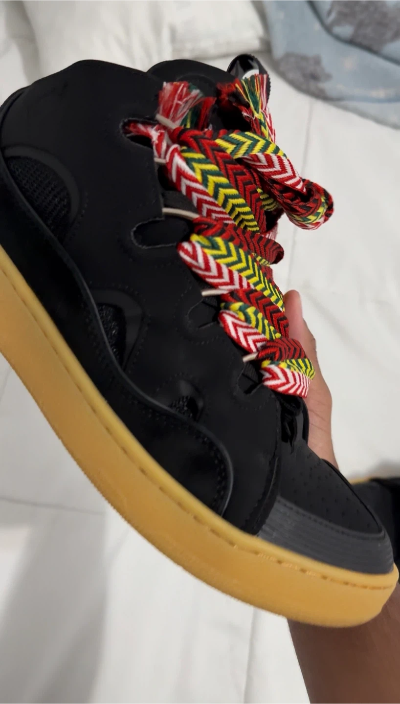 Selling a pair of lanvins in black They come with the box and unique colorful laces. These sneakers are in good condition Lanvin curb black looking too trade these for the all black Lanvin curbs or the black reflective lanvins just trying to trade the shoes you don’t have to give me the box you can KEEP your original box only trying to trade the shoes meets up very clean size 45