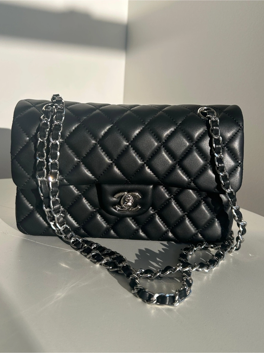 Selling a beautiful CC inspired handbag in black leather. It's in great condition and ready for a new home! The classic design and quality craftsmanship make it a timeless piece.
