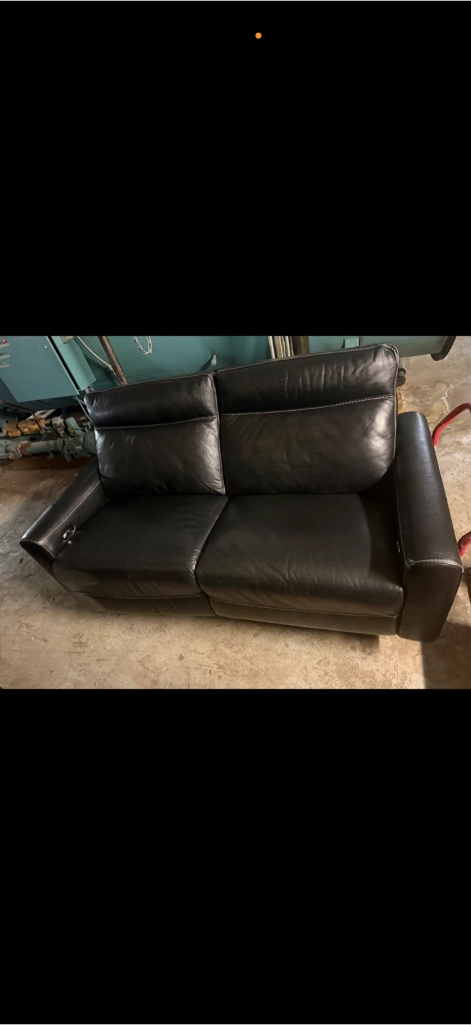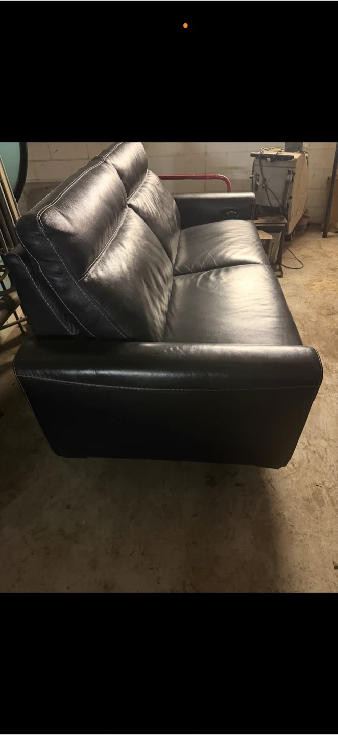 44Selling a black leather loveseat sofa. It's in good condition and would be a great addition to any living room or den. The loveseat is made of leather and is a sleek black color. It's perfect for lounging or entertaining guests