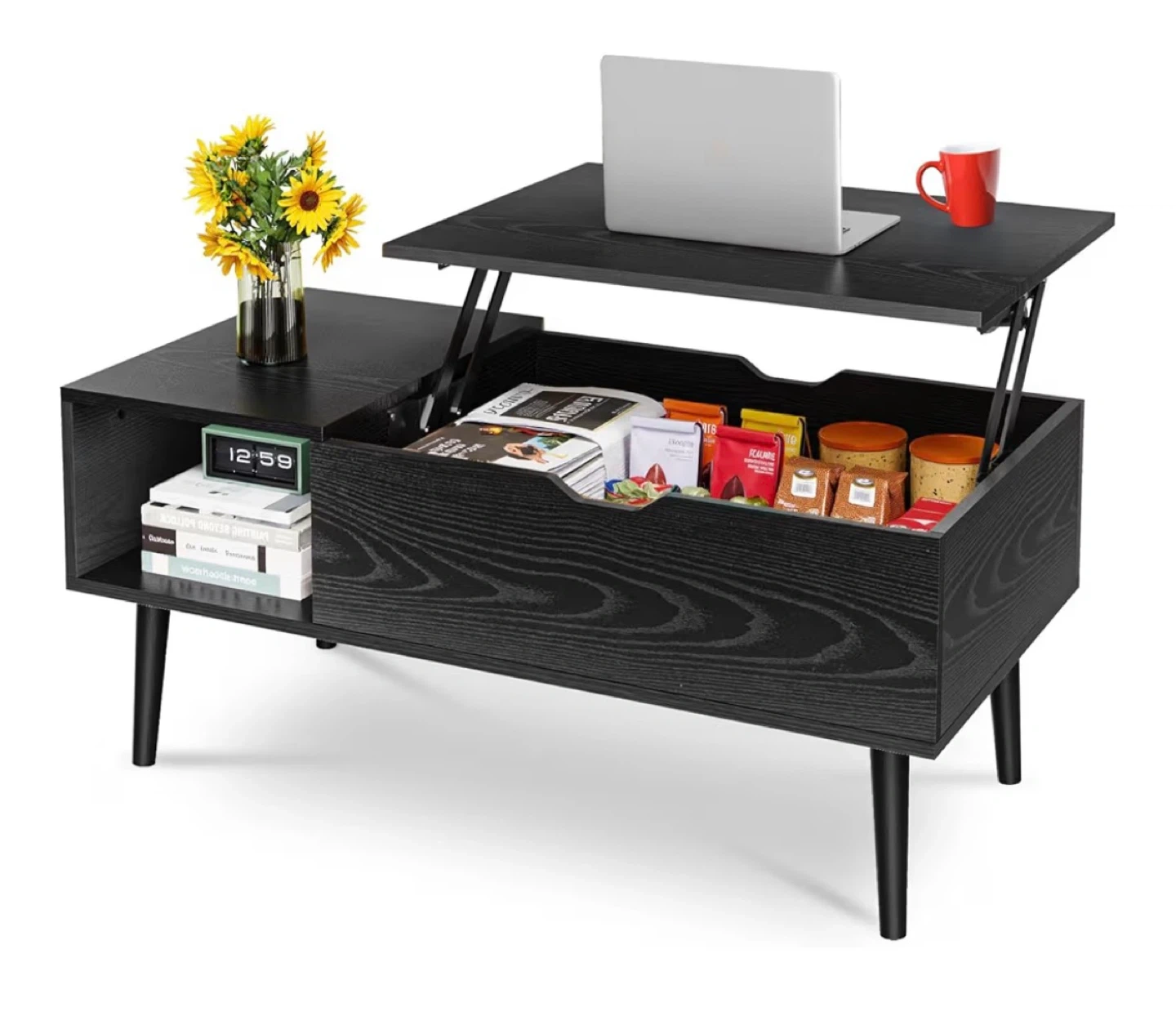60This coffee table is perfect for adding both style and functionality to your living room! It features a lift-top design, providing a convenient work surface or dining area. The hidden storage compartment is great for keeping magazines, remotes, and other essentials organized and out of sight. The table also includes open shelving on the side for displaying books or decorative items. It's a great piece to keep your living space tidy and stylish