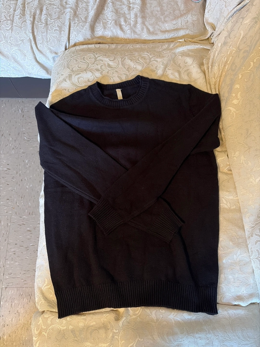 Selling a black long sleeve sweater in size large. It's a simple and classic piece that's easy to match with anything! The sweater is in good condition and ready for a new home
