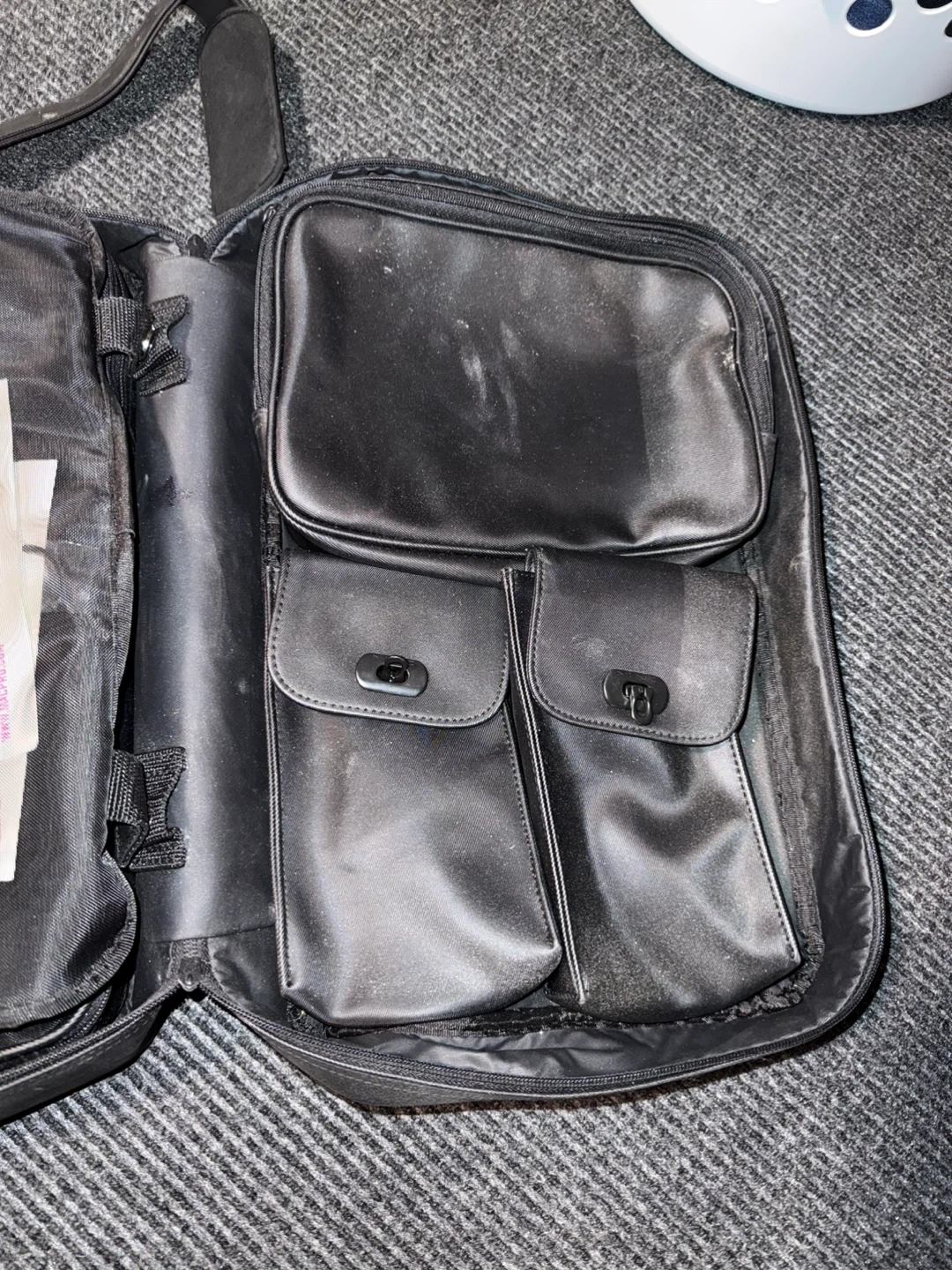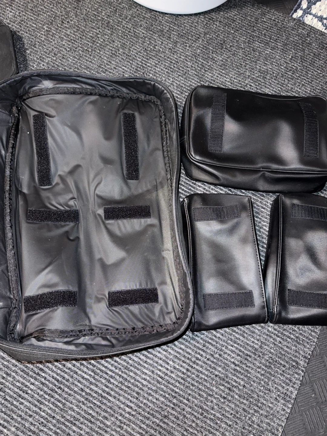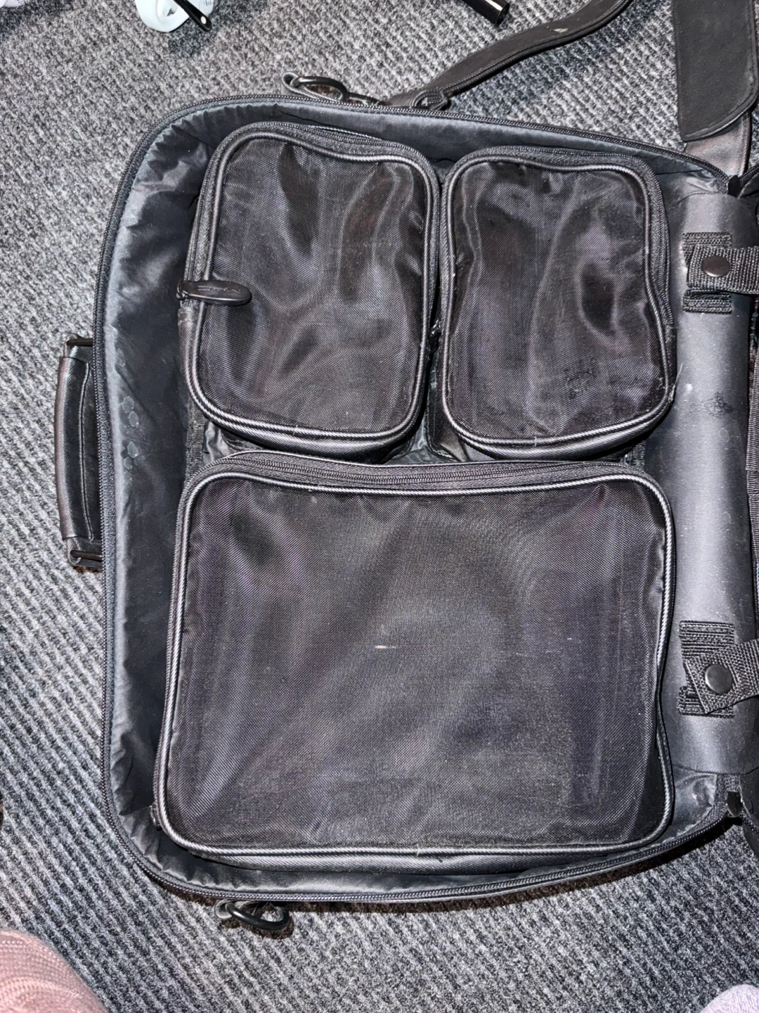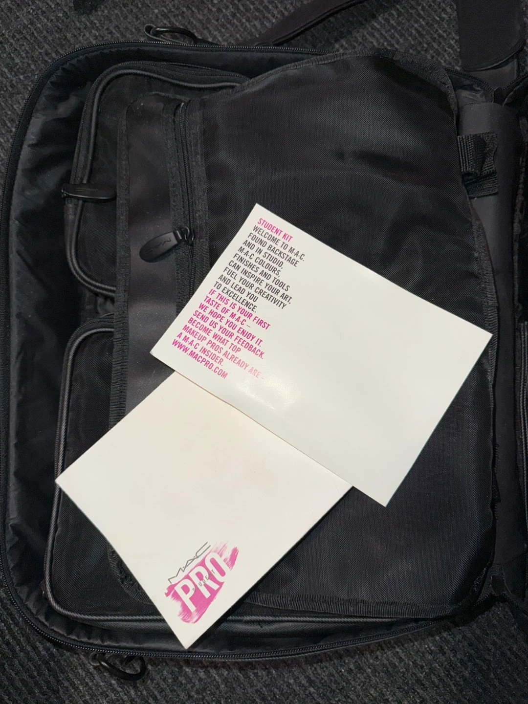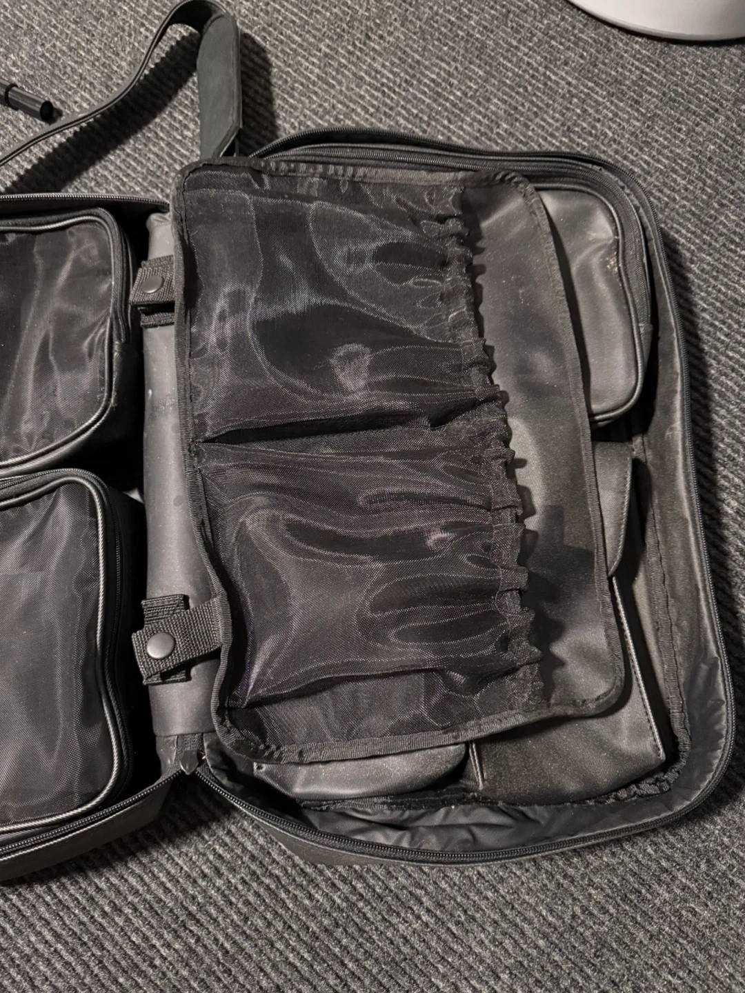 Selling a black makeup artist bag with multiple compartments and storage spaces. It's perfect for organizing and carrying all your makeup essentials. The bag has several pockets and pouches to keep everything in place.