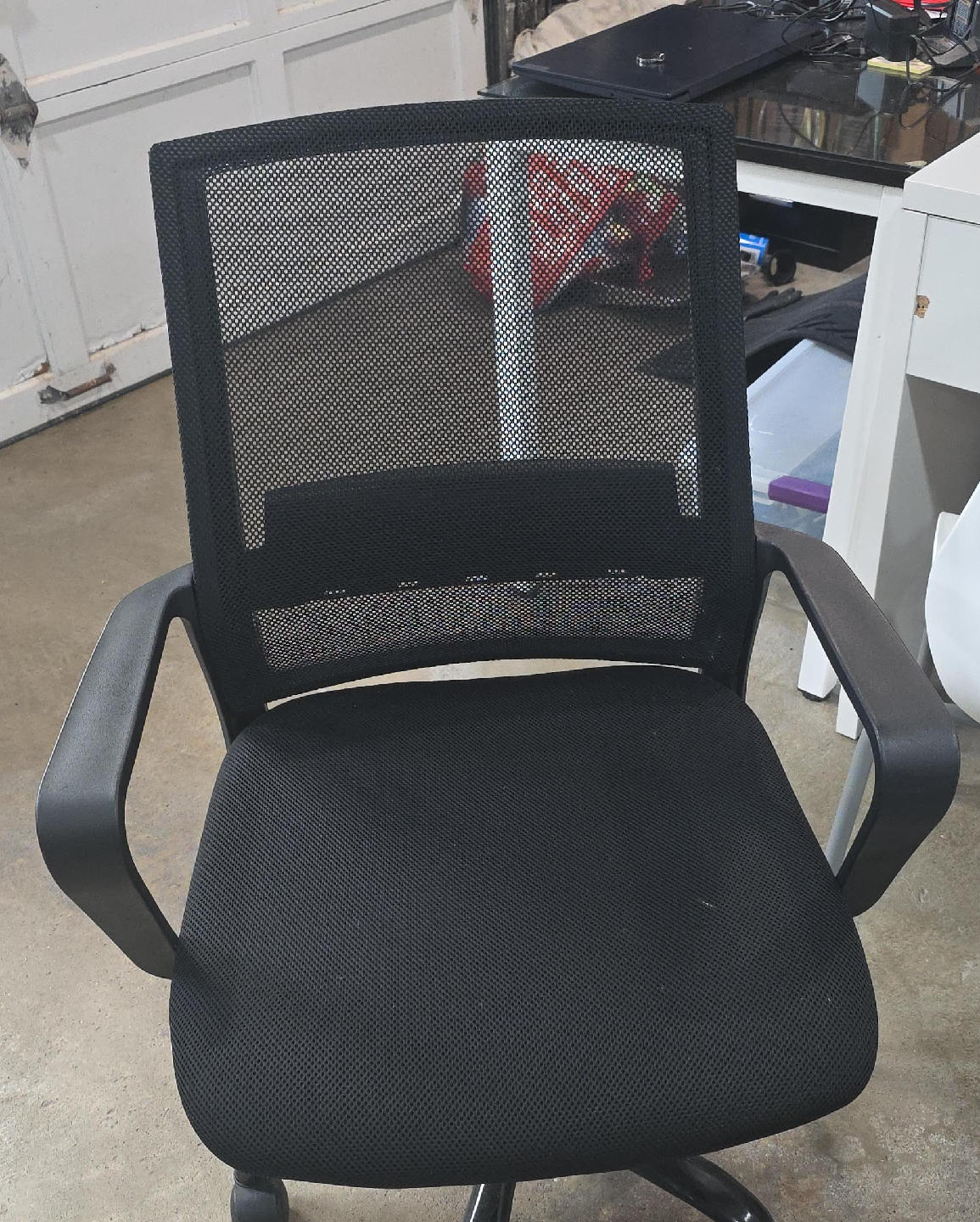 60Selling a black mesh office chair. It's in good condition and ready for a new home! Perfect for your home office or study space. The mesh back provides great ventilation, keeping you cool and comfortable during long hours of work or gaming