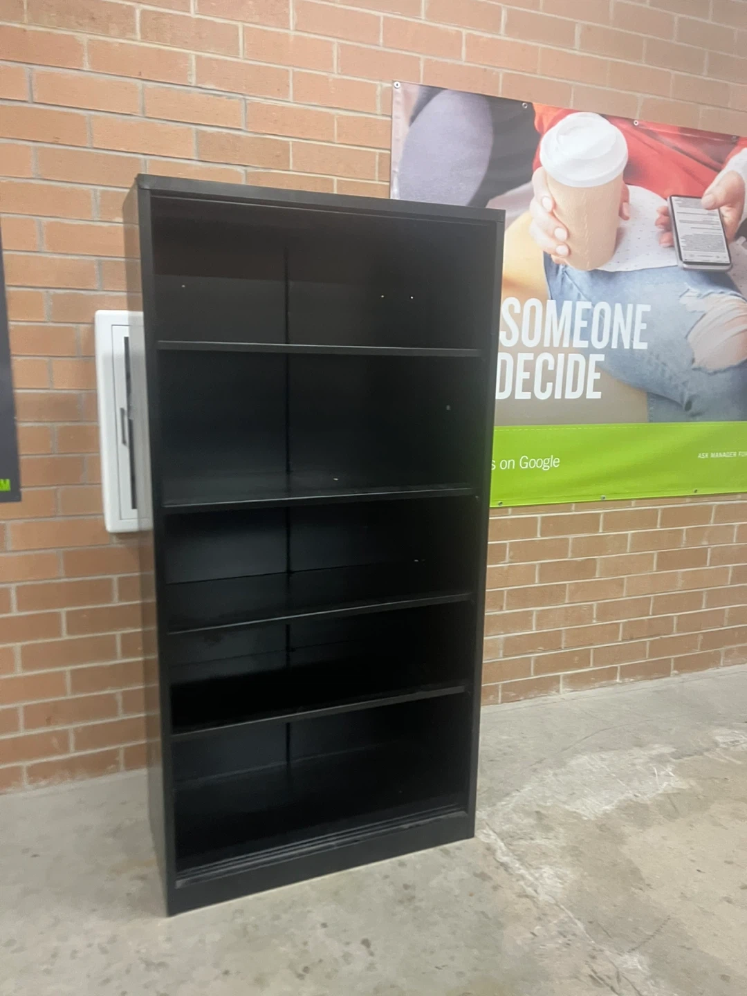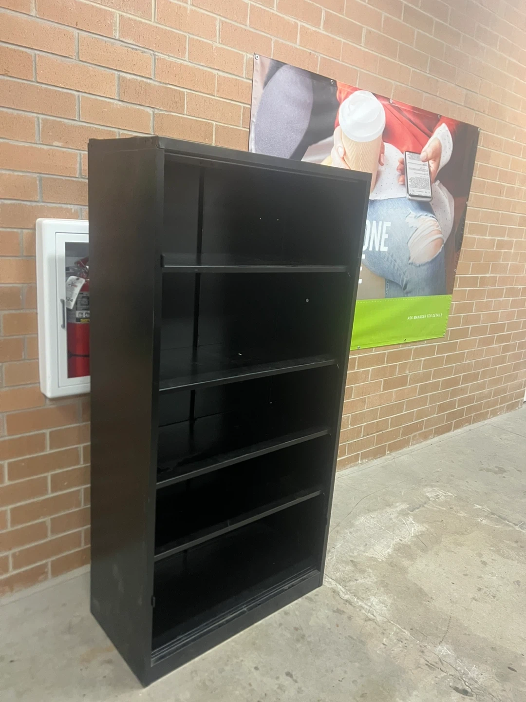 364Selling a black metal bookshelf. H72/ W36/ D18. It has several shelves for plenty of storage. Removable/adjustable shelves. Great for organizing books or displaying items! Normal wear. FREE delivery within close proximity!