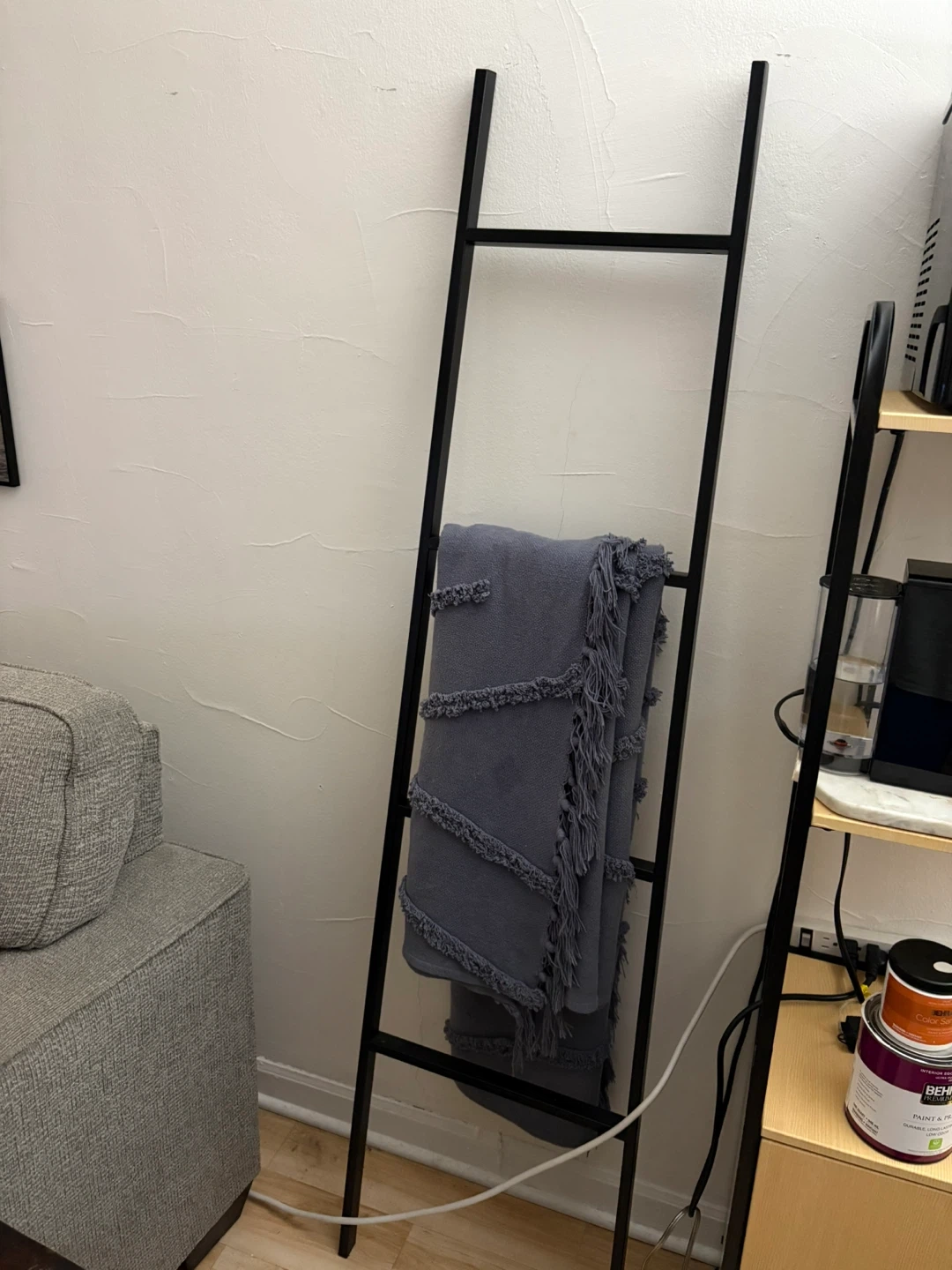 10I'm selling a black metal decorative ladder! It's in great condition and perfect for adding a touch of modern style to your home. It can be used to display blankets, towels, or even magazines. It's a great way to save space and add some visual interest to any room