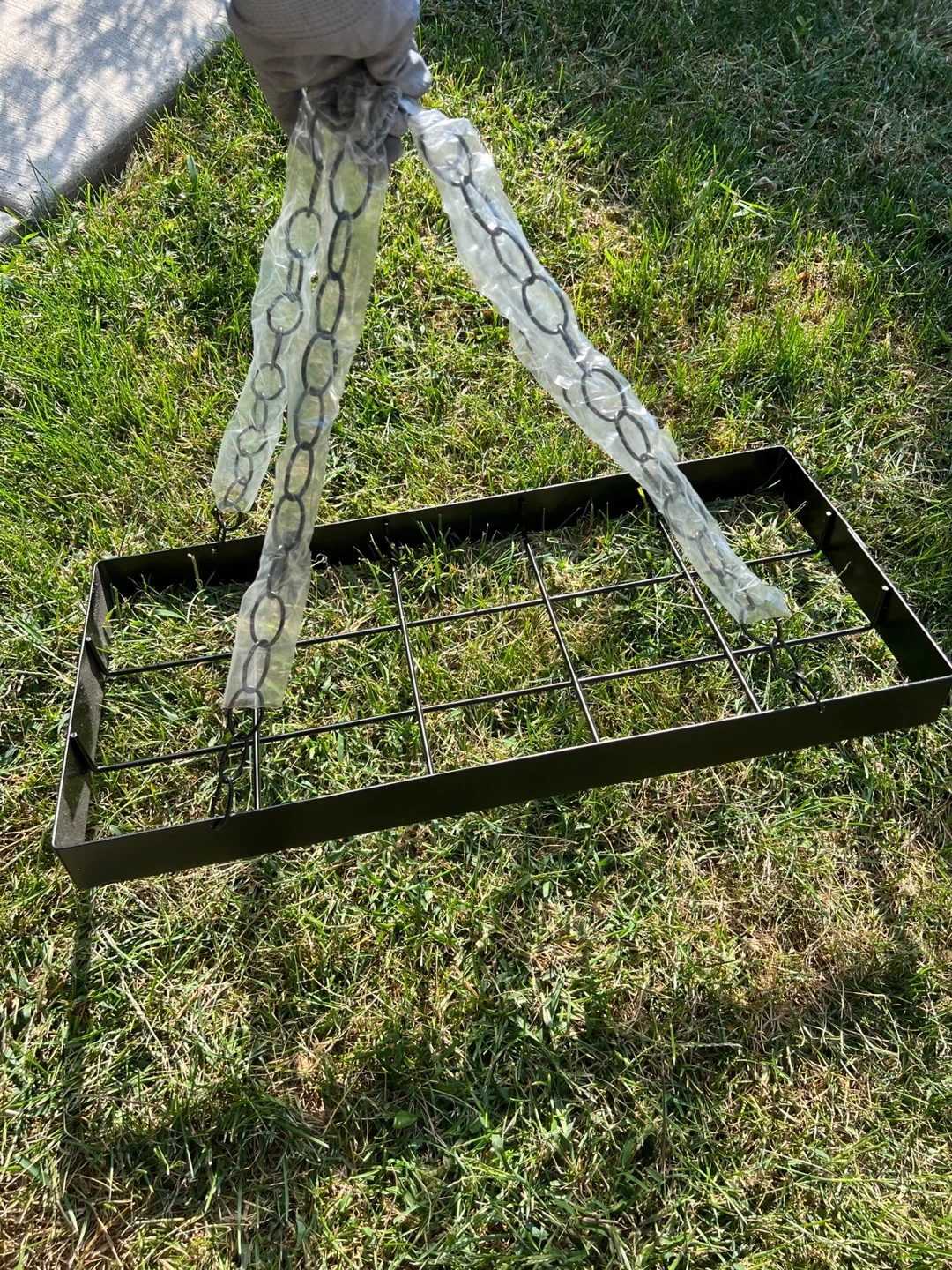 Selling a black metal hanging pots & pans. It's in great condition and ready to add some zaz to your space! Includes chains and hooks for easy hanging
