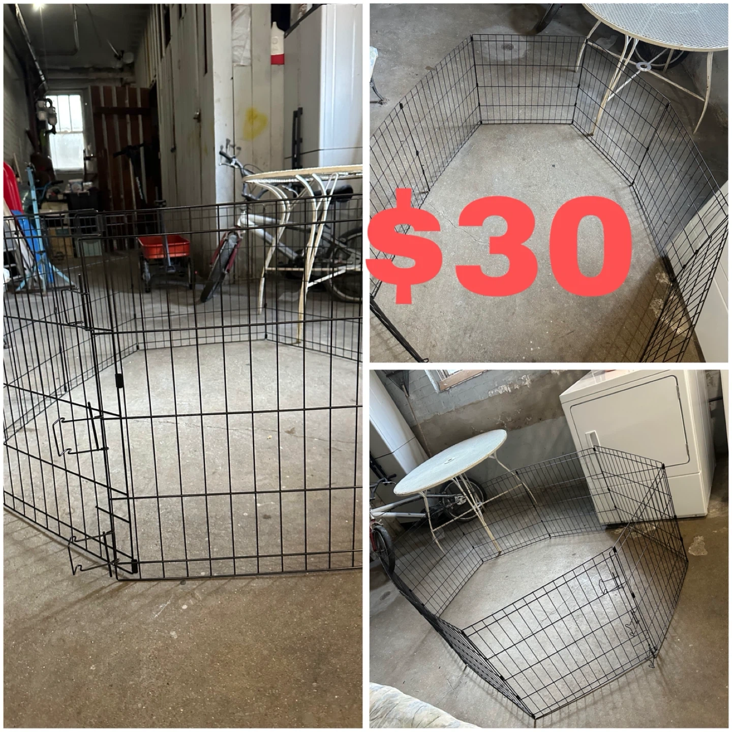 Selling a black metal pet playpen! It's in good condition and ready for a new home. Perfect for keeping your furry friend safe and secure, indoors or outdoors