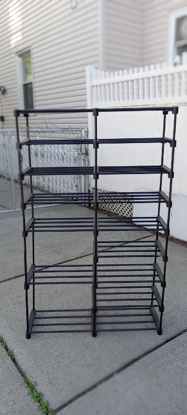 28I'm selling a black metal shoe rack. It's in good condition and ready to help organize your shoes! It has multiple tiers for ample storage ,zapatero
