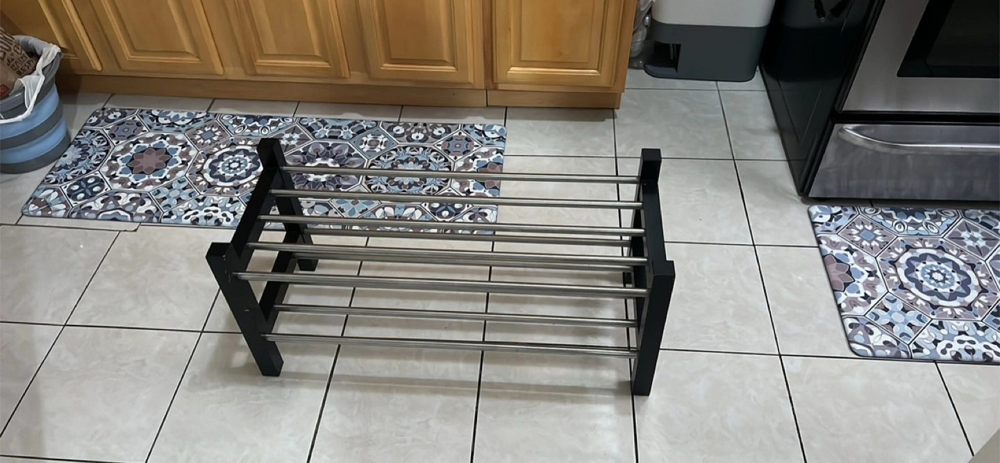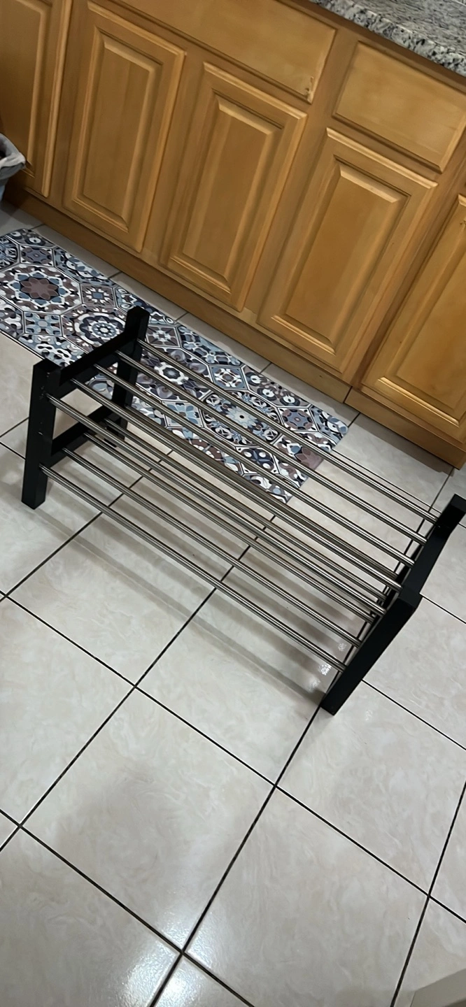 41Here is a black metal shoe rack for sale! It's in great condition and ready to organize your shoes. Perfect for entryways or closets